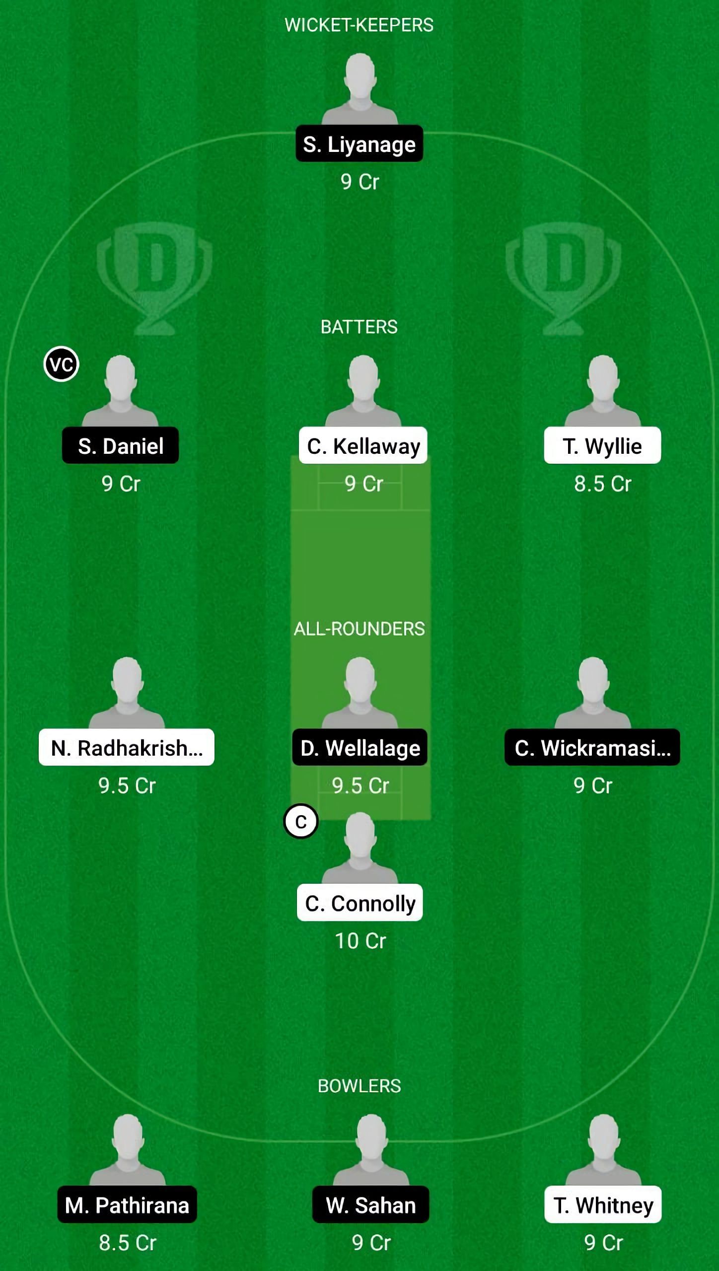 Captain: D Wellalage. Vice-captain: N Radhakrishnan.
