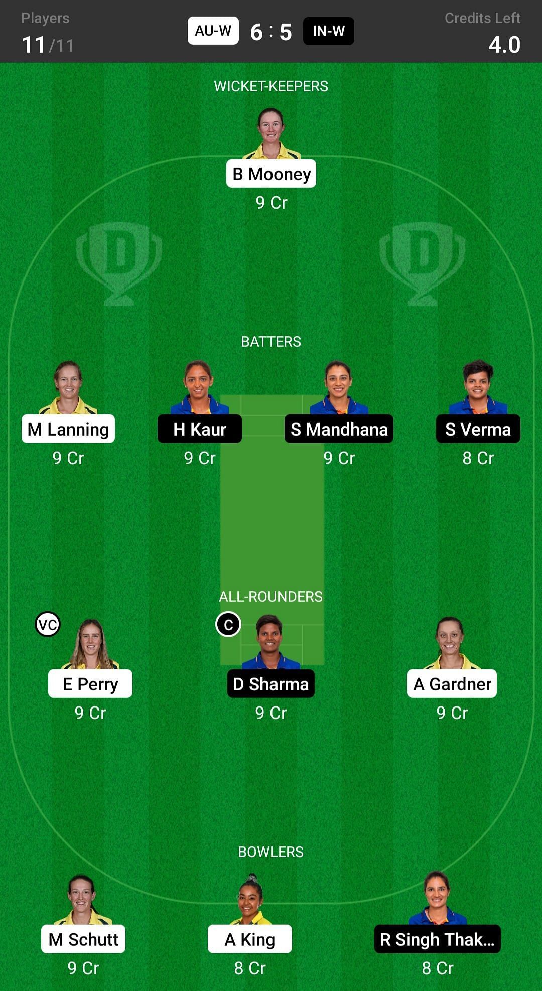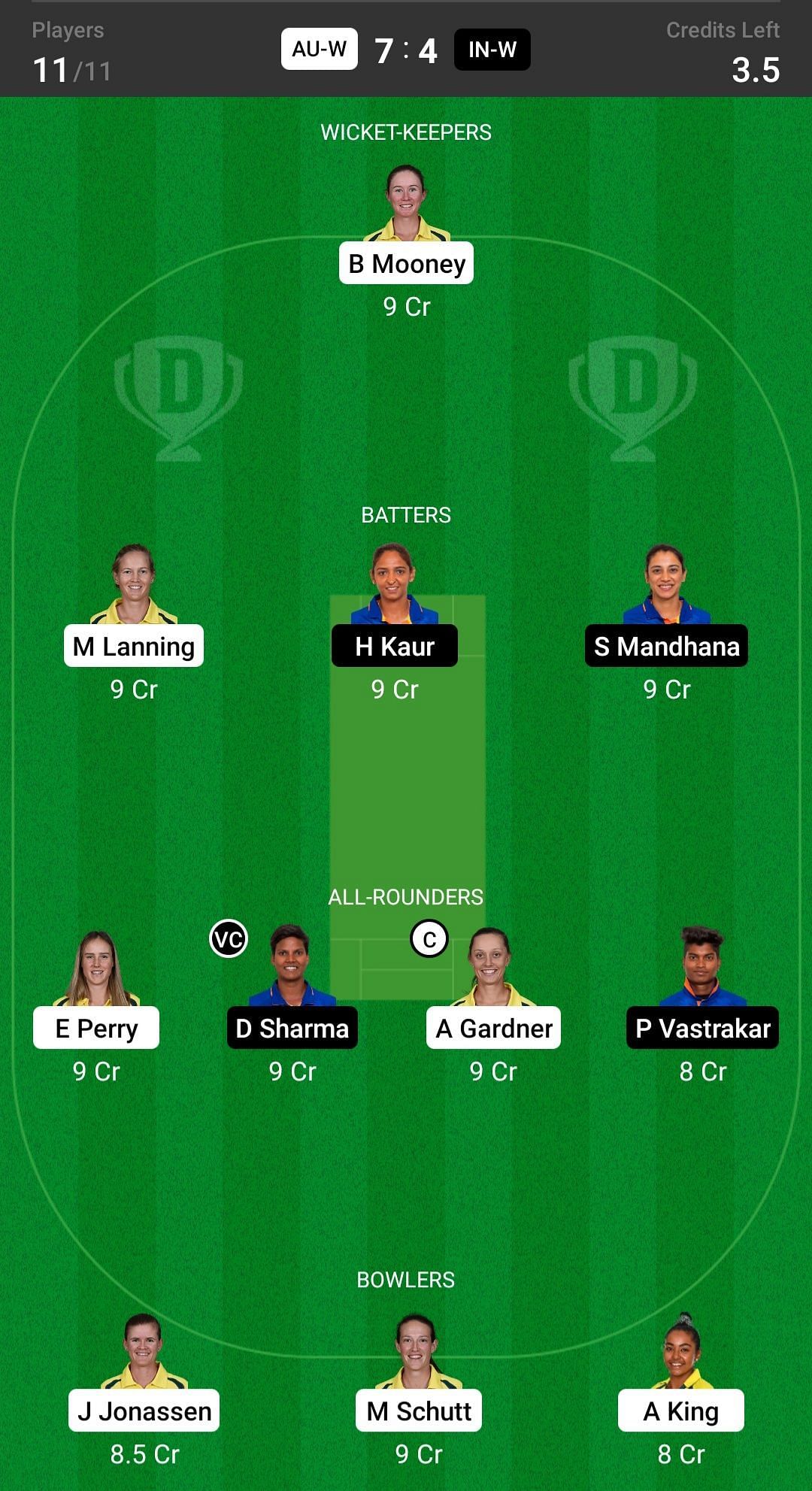 AU-W vs IN-W Dream11 Match Top Picks