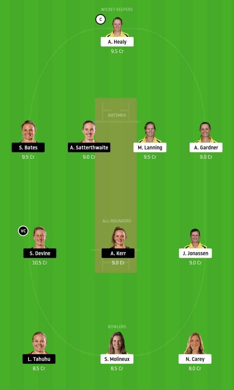 Fantasy Suggestion #1: Alyssa Healy, Suzie Bates, Amy Satterthwaite, Meg Lanning, Ashleigh Gardner, Sophie Devine, Amelia Kerr, Jess Jonassen, Lea Tahuhu, Sophie Molineux and Nicola Carey