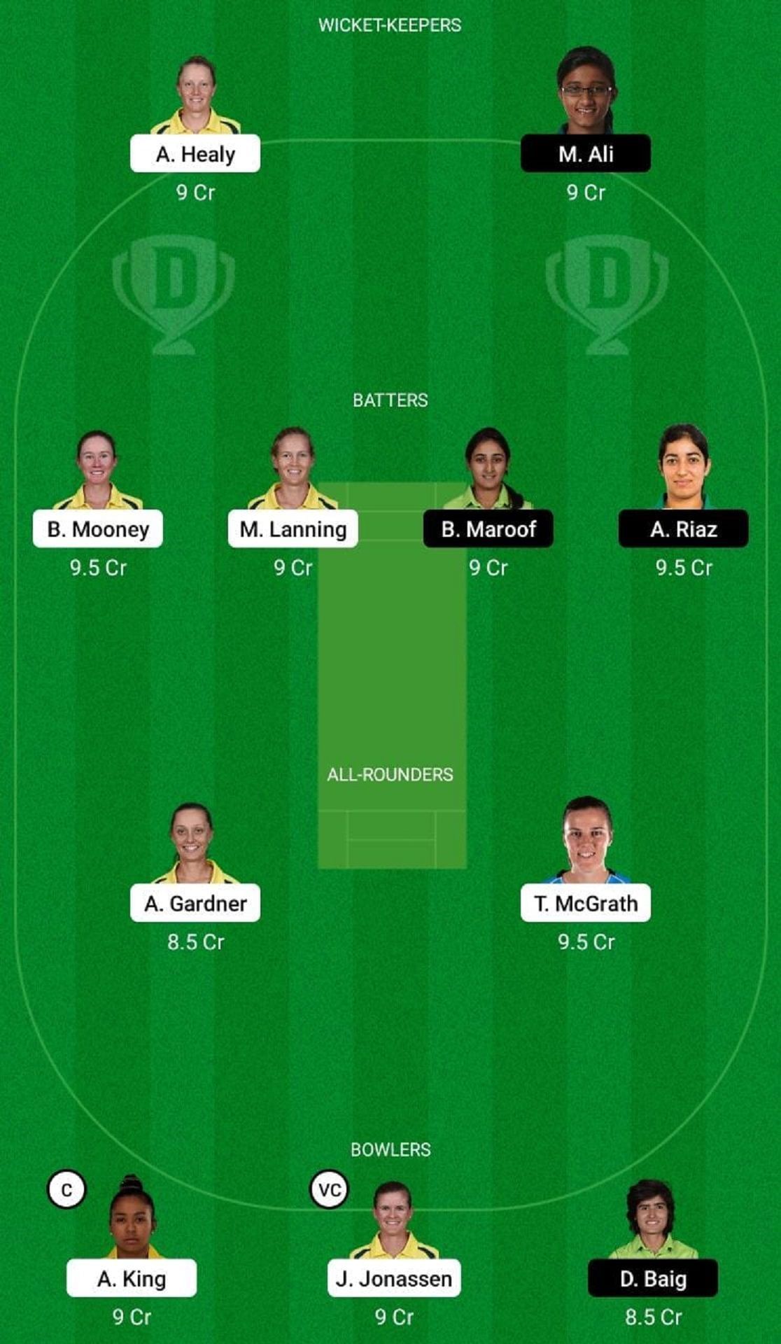 Fantasy Suggestion #2: Muneeba Ali, Alyssa Healy, Meg Lanning, Aliya Riaz, Bismah Maroof, Beth Mooney, Ashleigh Gardner, Tahlia McGrath, Alana King, Jess Jonassen, Diana Baig.