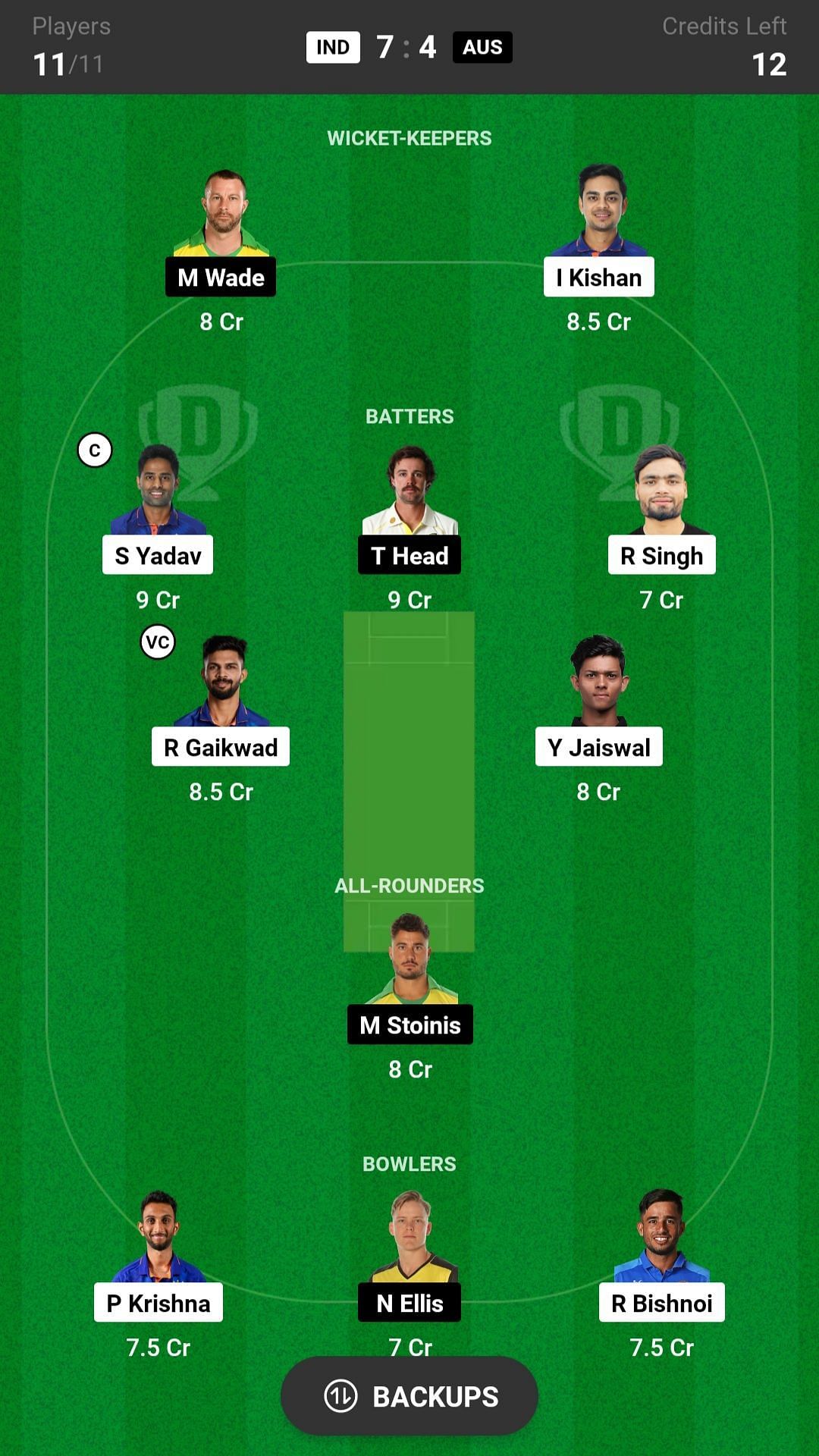 Batters: R Singh, S Yadav, Y Jaiswal, R Gaikwad, T Head.