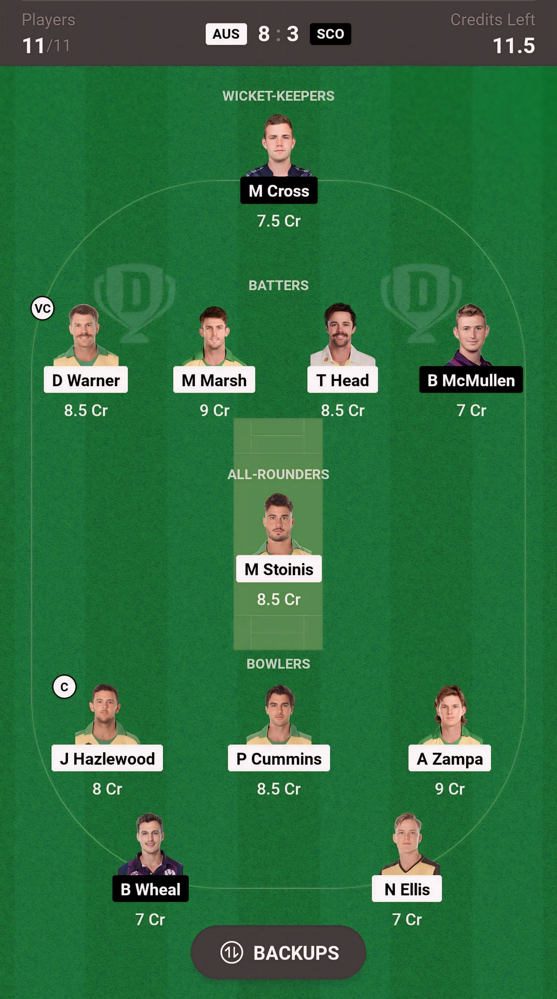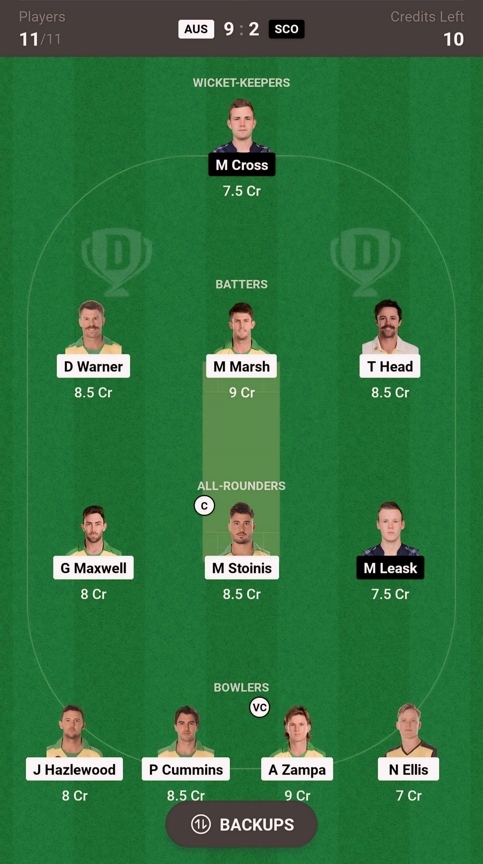 Australia vs Scotland Dream11 Prediction Today, Grand League