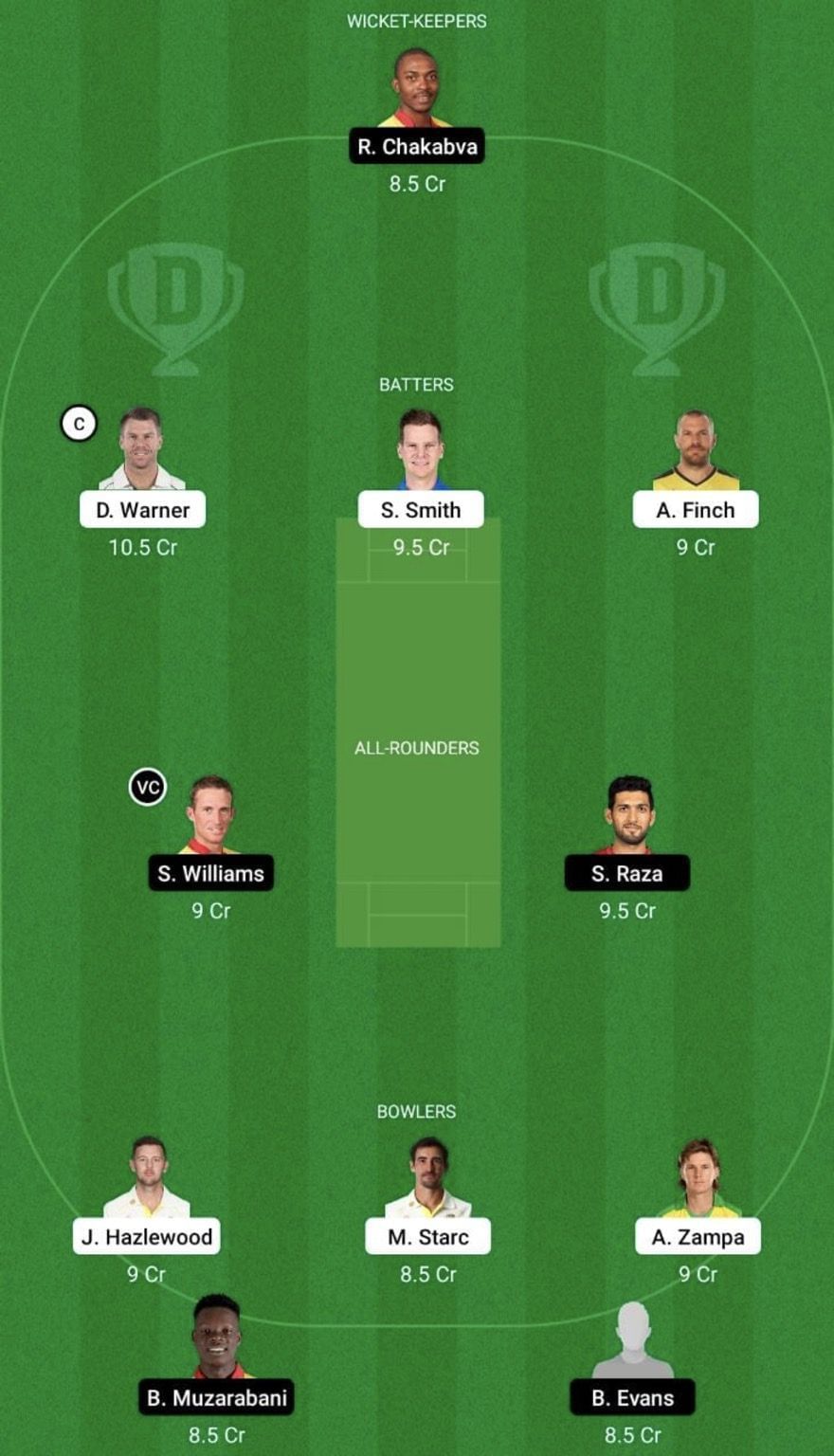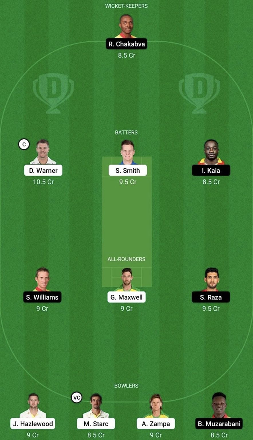 Zimbabwe's batting unit might not be able to withstand Australia's bowling might in the AUS vs ZIM contest. However, their all-rounders Sikandar Raza, Sean Williams and Ryan Burl could come in handy given their utility with both the bat and ball. Avoiding Zimbabwe's top-order batters is the way to go against Josh Hazlewood and Mitchell Starc.