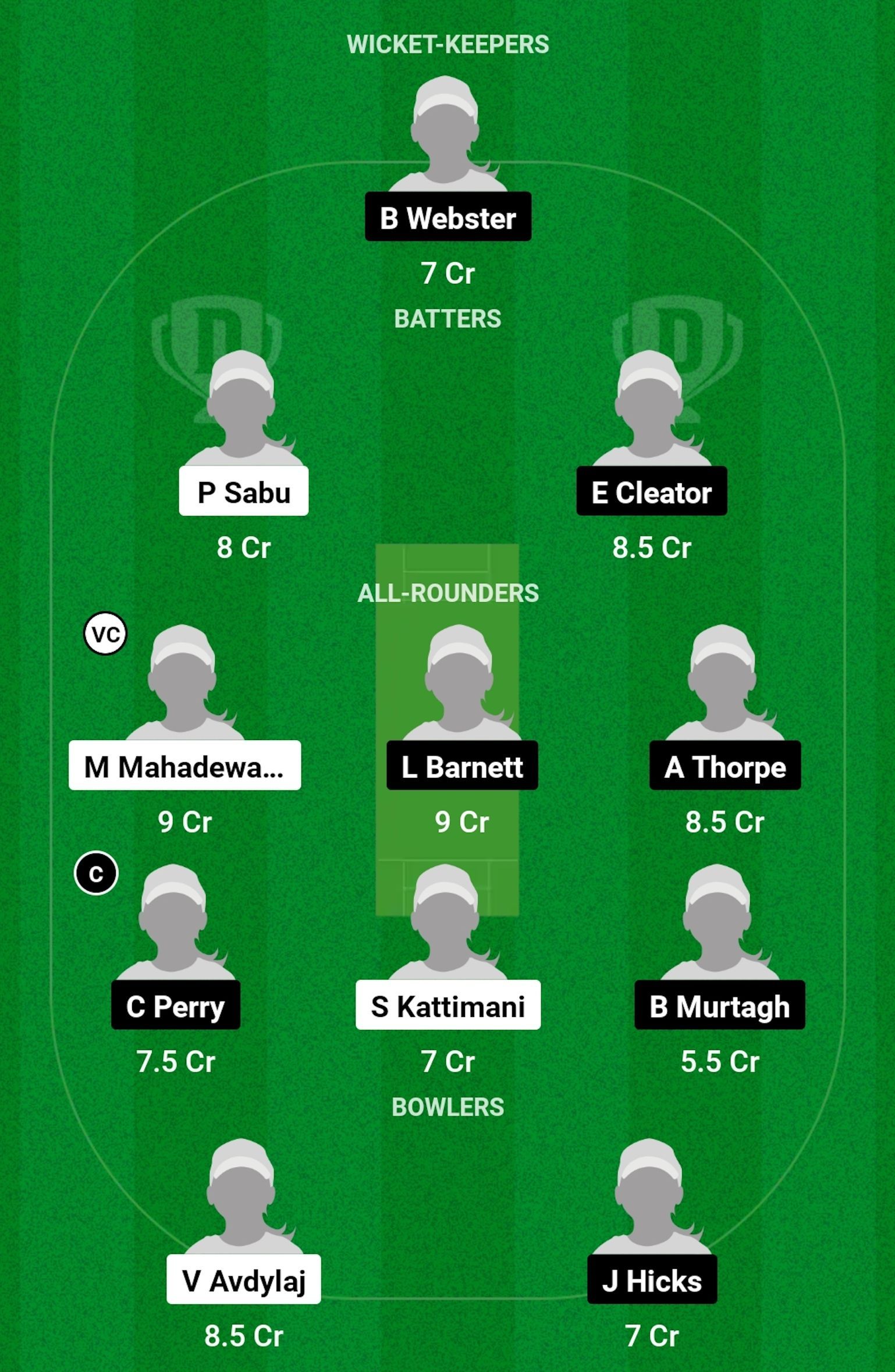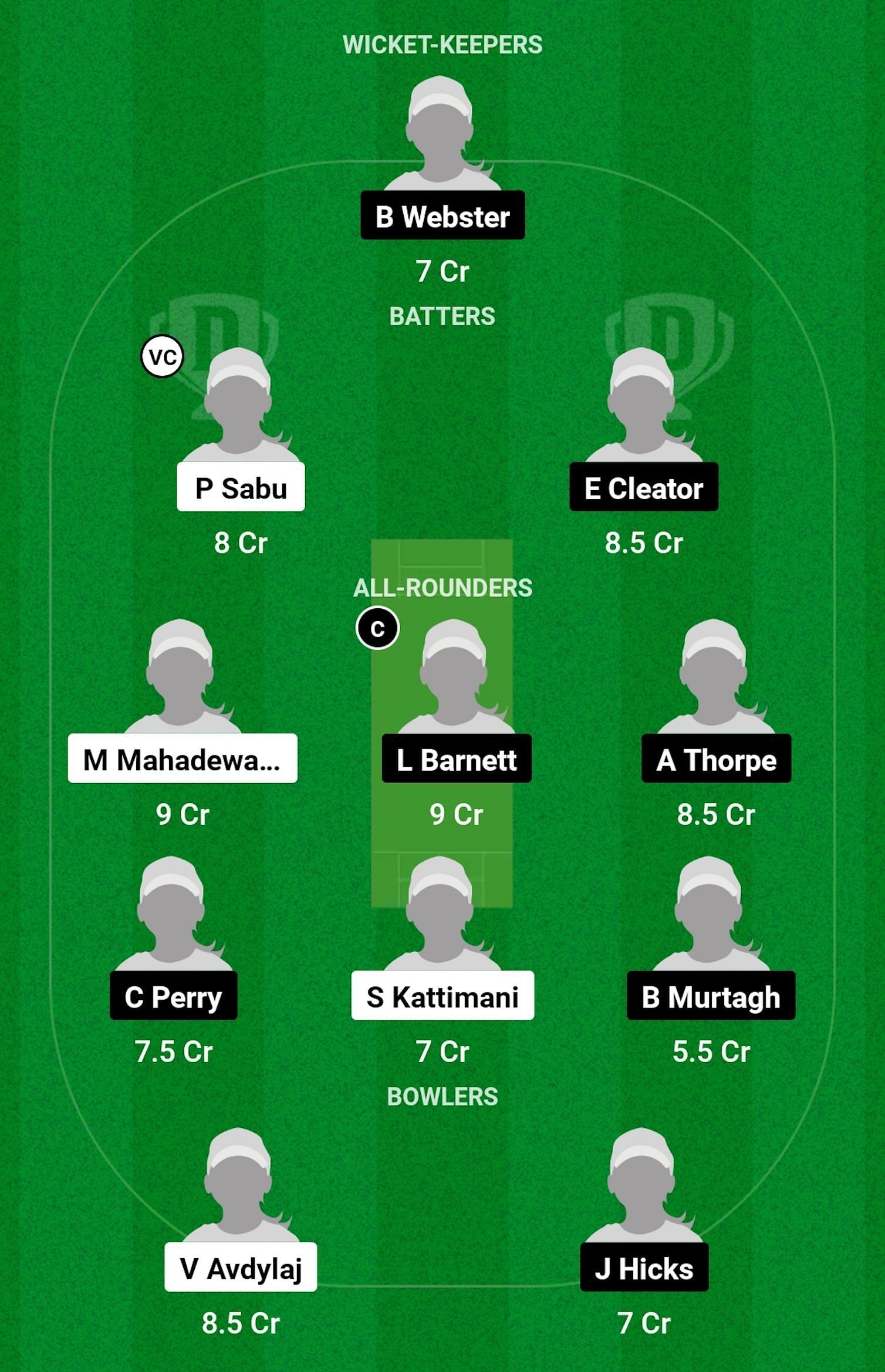 Batters: Priya Sabu, E Cleator