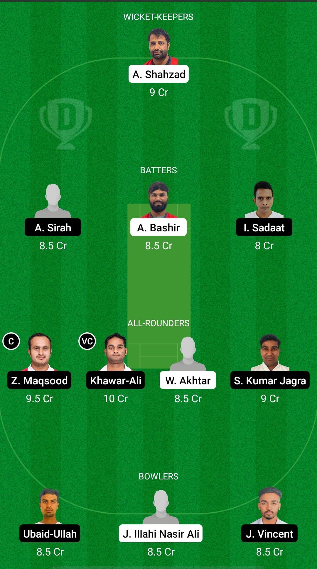 Fantasy Suggestion #1: Khurram Khan, Amanpreet Sirah, Arsalan Bashir, Jibran Yousuf, Zeeshan Maqsood, Khawar Ali, Waseem Akhtar, Rao Waqar Ahmed, Ubaid Ullah, Khalid Rasheed, Joshin Vincent.