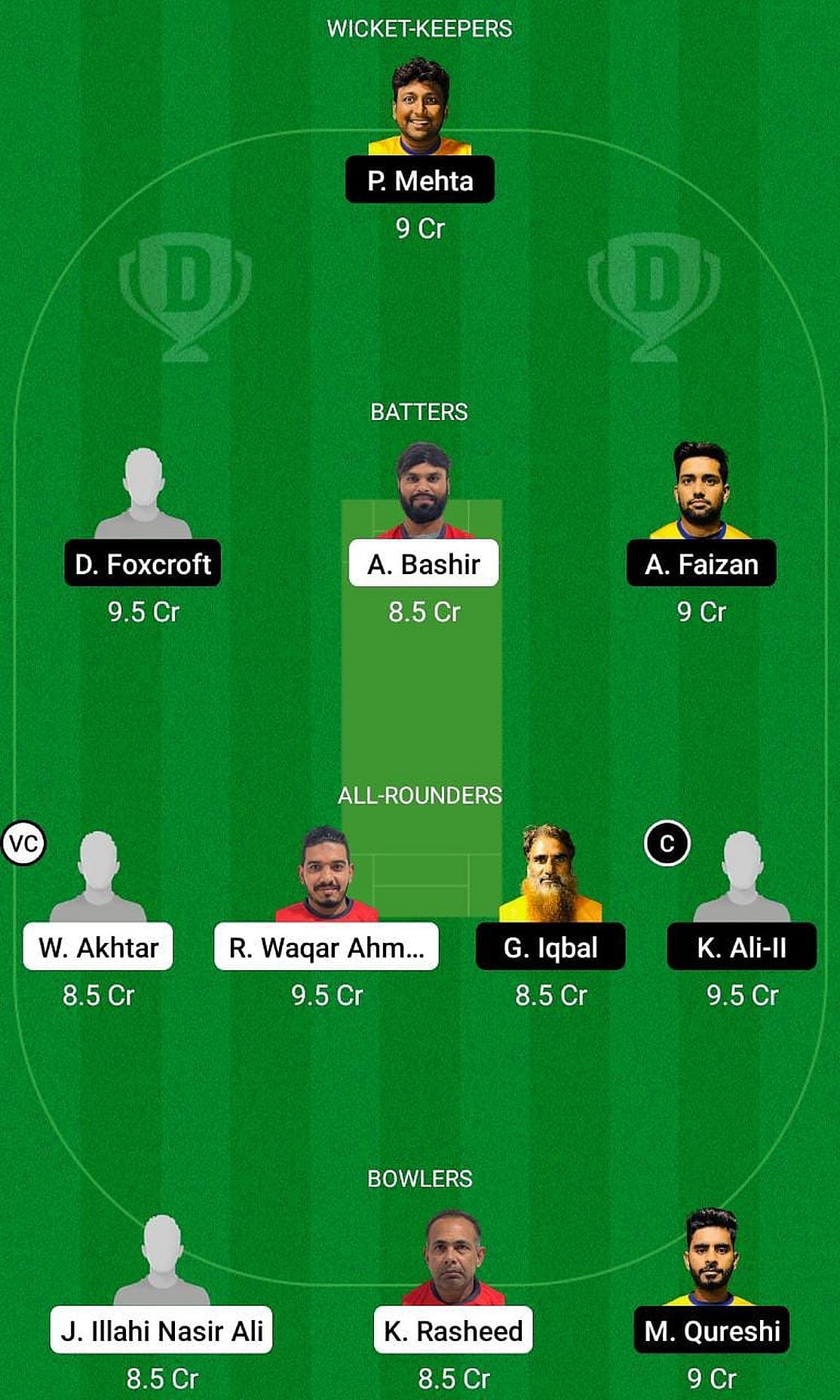 Captain: Kashif Ali-I Vice-captain: Rao Waqar
