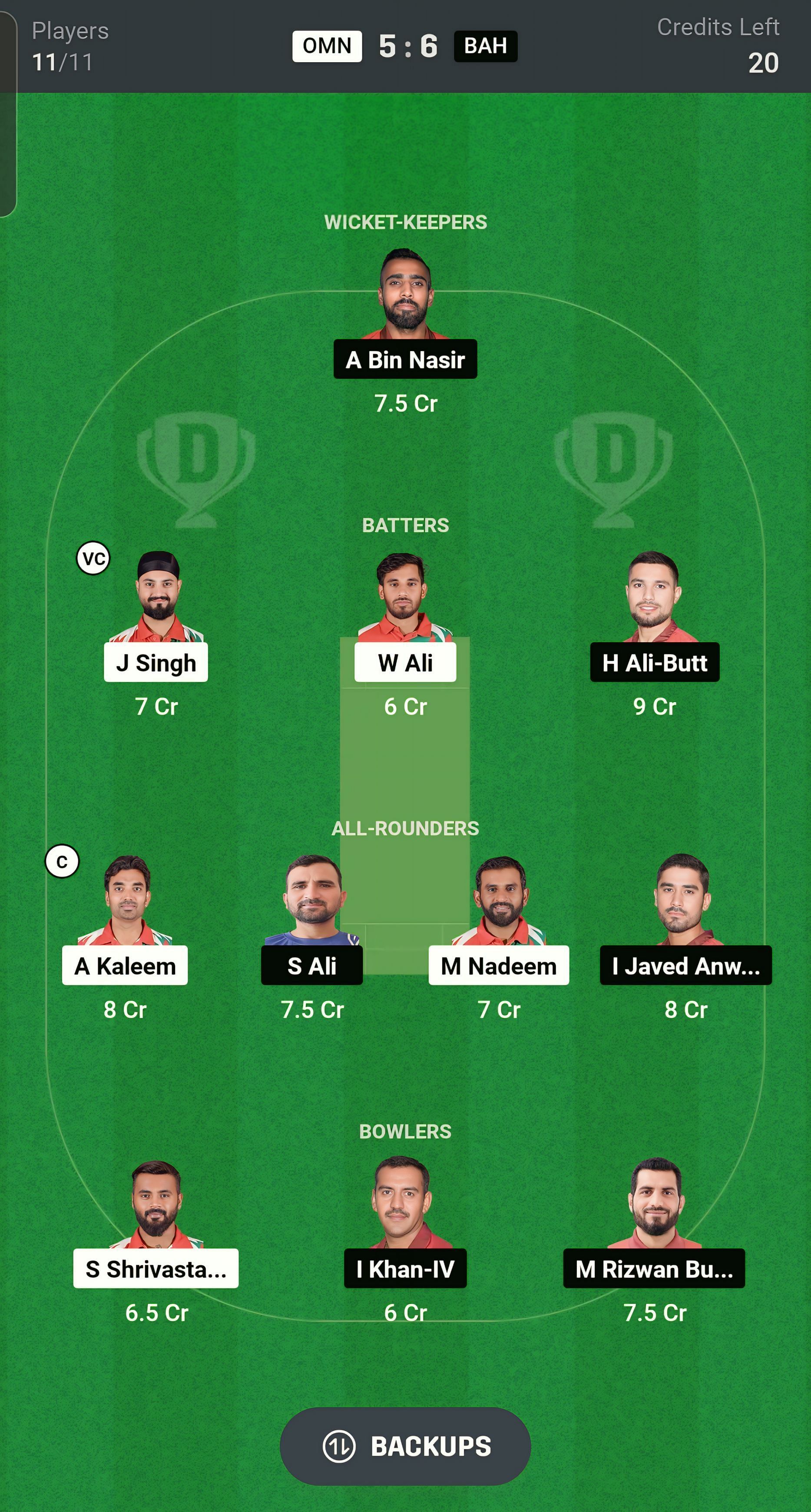 I Javed is the most crucial pick from Bahrain as the pitch is expected to support both bowlers and batters. He will bat in the top order and complete his quota of overs. He has smashed five runs and taken five wickets in the last three matches.
