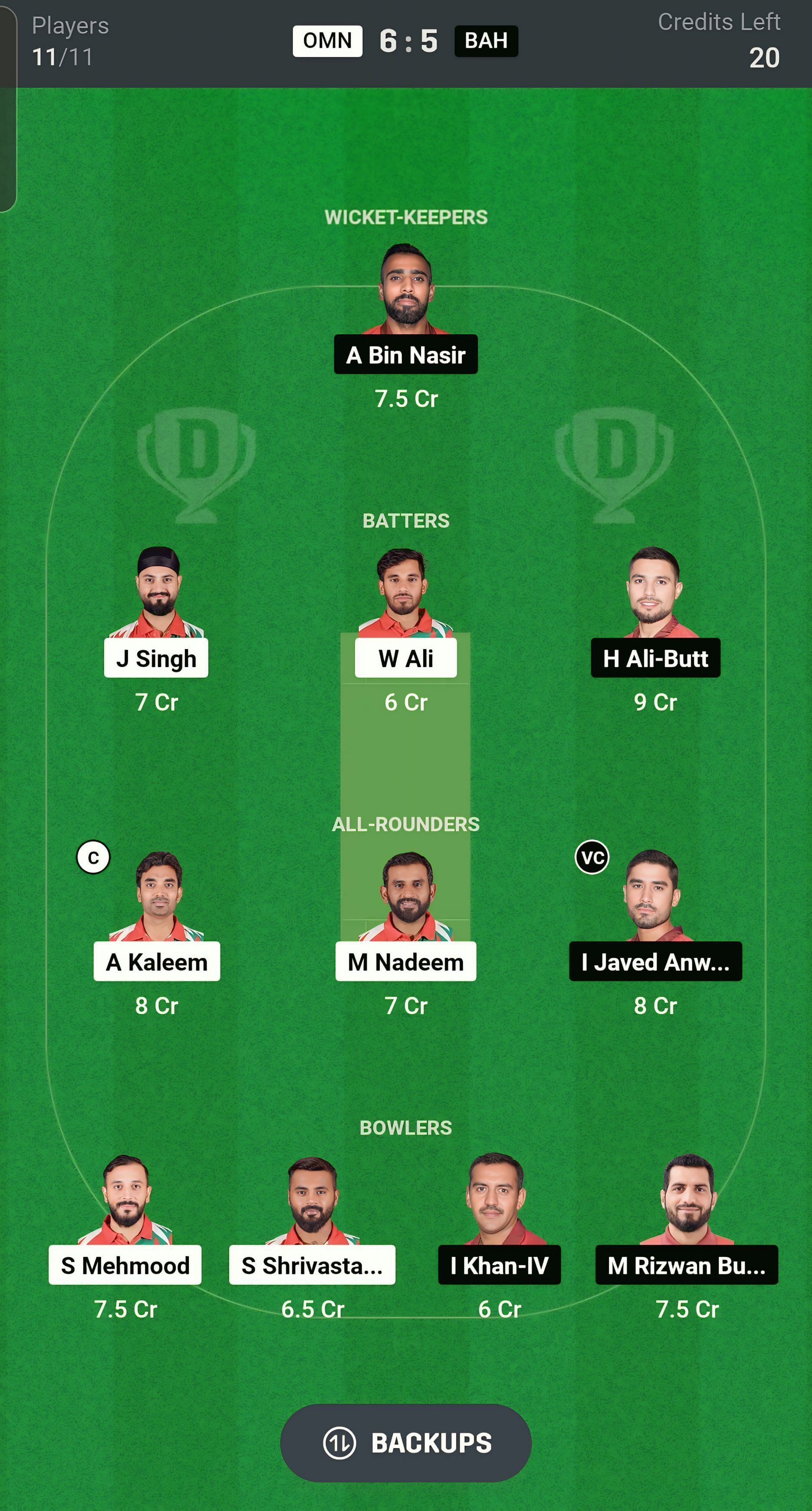 Bahrain vs Oman Dream11 Prediction Today, Grand League