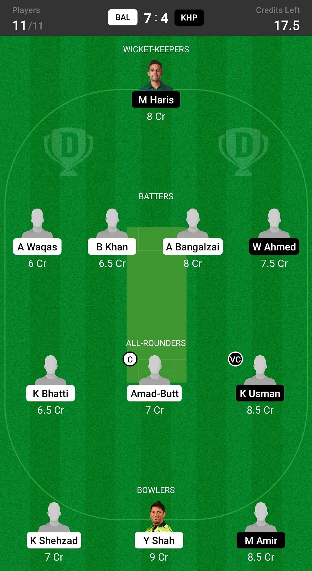 A Bangalzai and A Waqas are the two best batter picks for the Dream11 team. W Ahmed has played exceptionally well in the last few matches, so he is also a good pick for today's Dream11 team.
