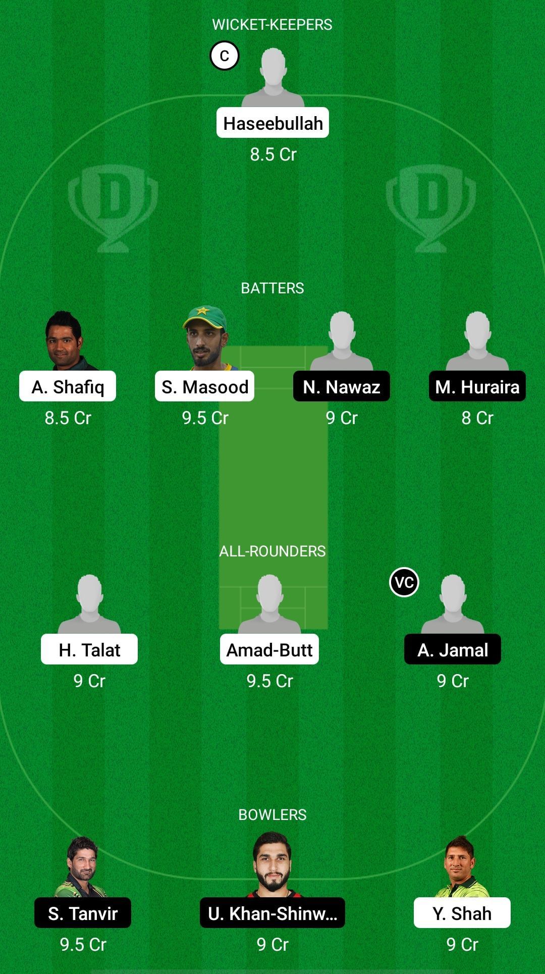 Yasir Shah (C), Shan Masood, Haseebullah Khan (WK), Asad Shafiq, Haris Sohail, Hussain Talat, Amad Butt, Kashif Bhatti, Khurram Shahzad, Junaid Khan, Abdul Bangalzai.