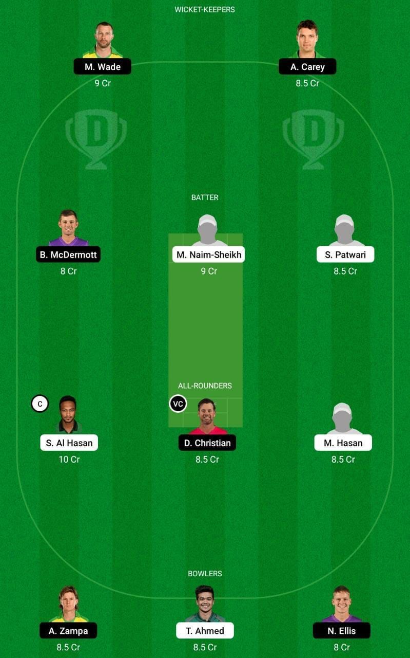 Fantasy Suggestion #2: Matt Wade, Shamim Patwari, Mohammad Naim, Ben McDermott, Shakib Al Hasan, Alex Carey, Mahedi Hasan, Daniel Christian, Taskin Ahmed, Adam Zampa and Nathan Ellis