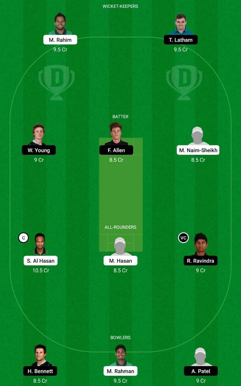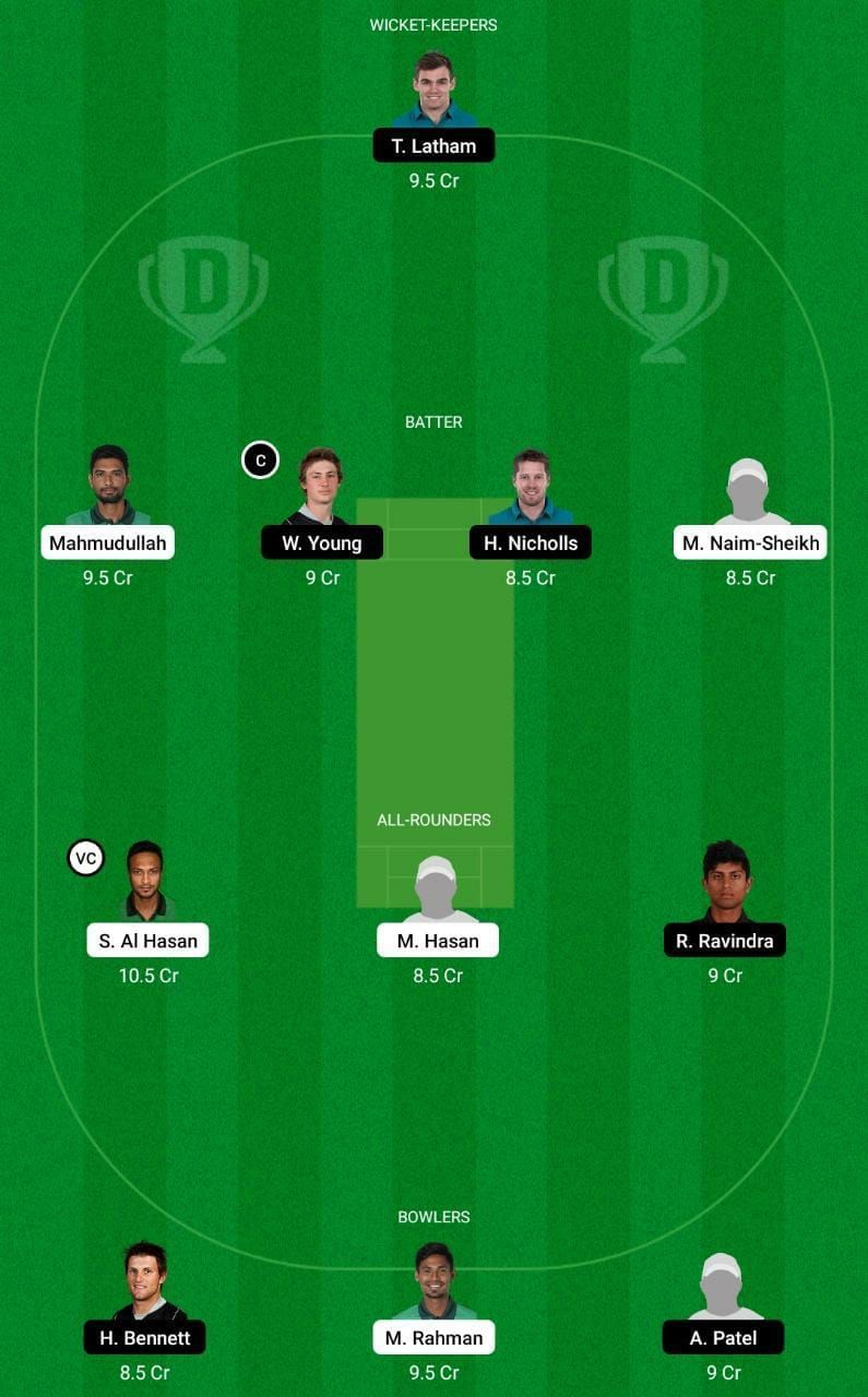 Fantasy Suggestion #2: Mahmudullah Riyad, Tom Latham, Will Young, Henry Nicholls, Mohammad Naim, Shakib Al Hasan, Mahedi Hasan, Rachin Ravindra, Hamish Bennett, Mustafizur Rahman and Ajaz Patel