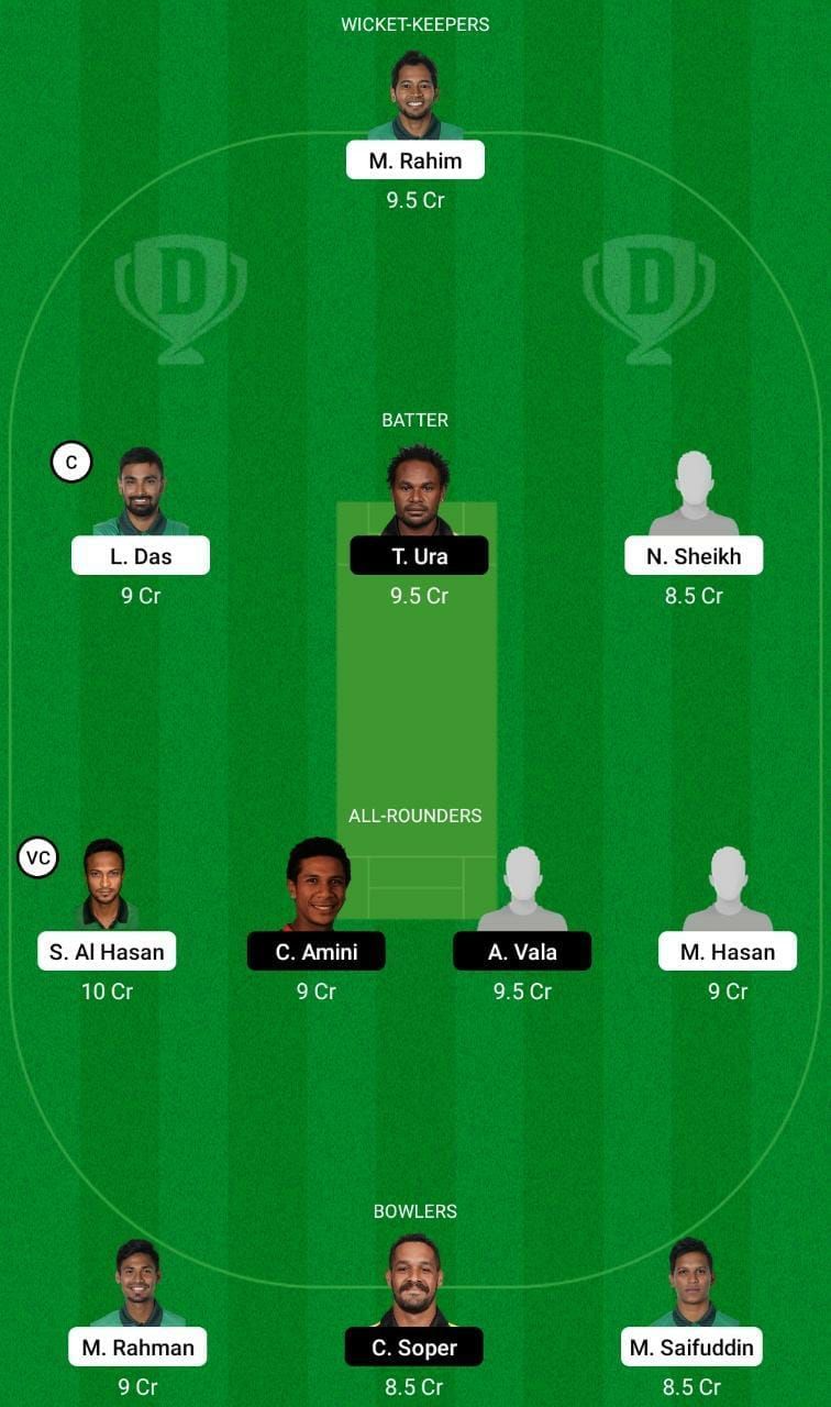 Fantasy Suggestion #2: Mushfiqur Rahim, Lega Siaka, Mohammad Naim, Liton Das, Shakib Al Hasan, Charles Amini, Kiplin Doriga, Mahedi Hasan, Mustafizur Rahman, Chad Soper and Mohammad Saifuddin