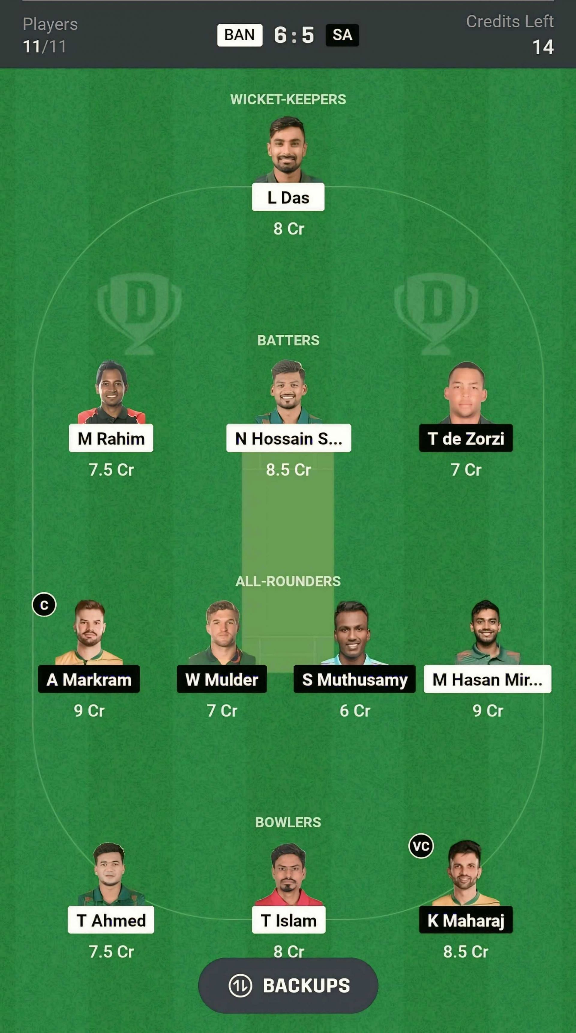 Tristan Stubbs and Najmul Hossain Shanto are the two best batsmen picks for today's Dream11 team. Najmul Hossain Shanto has smashed 1539 runs in just 29 test matches. Mushfiqur Rahim is another good batter pick for today's match.