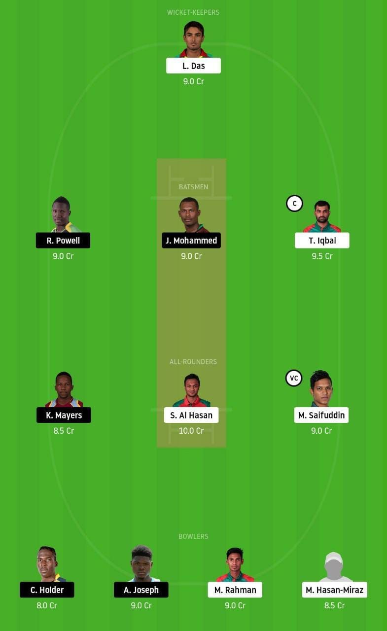 Fantasy Suggestion #1: Liton Das, Rovman Powell, Jason Mohammed, Tamim Iqbal, Kyle Mayers, Shakib al Hasan, Mohammad Saifuddin, Chemar Holder, Alzarri Joseph, Mustafizur Rahman and Mehidy Hasan Miraz