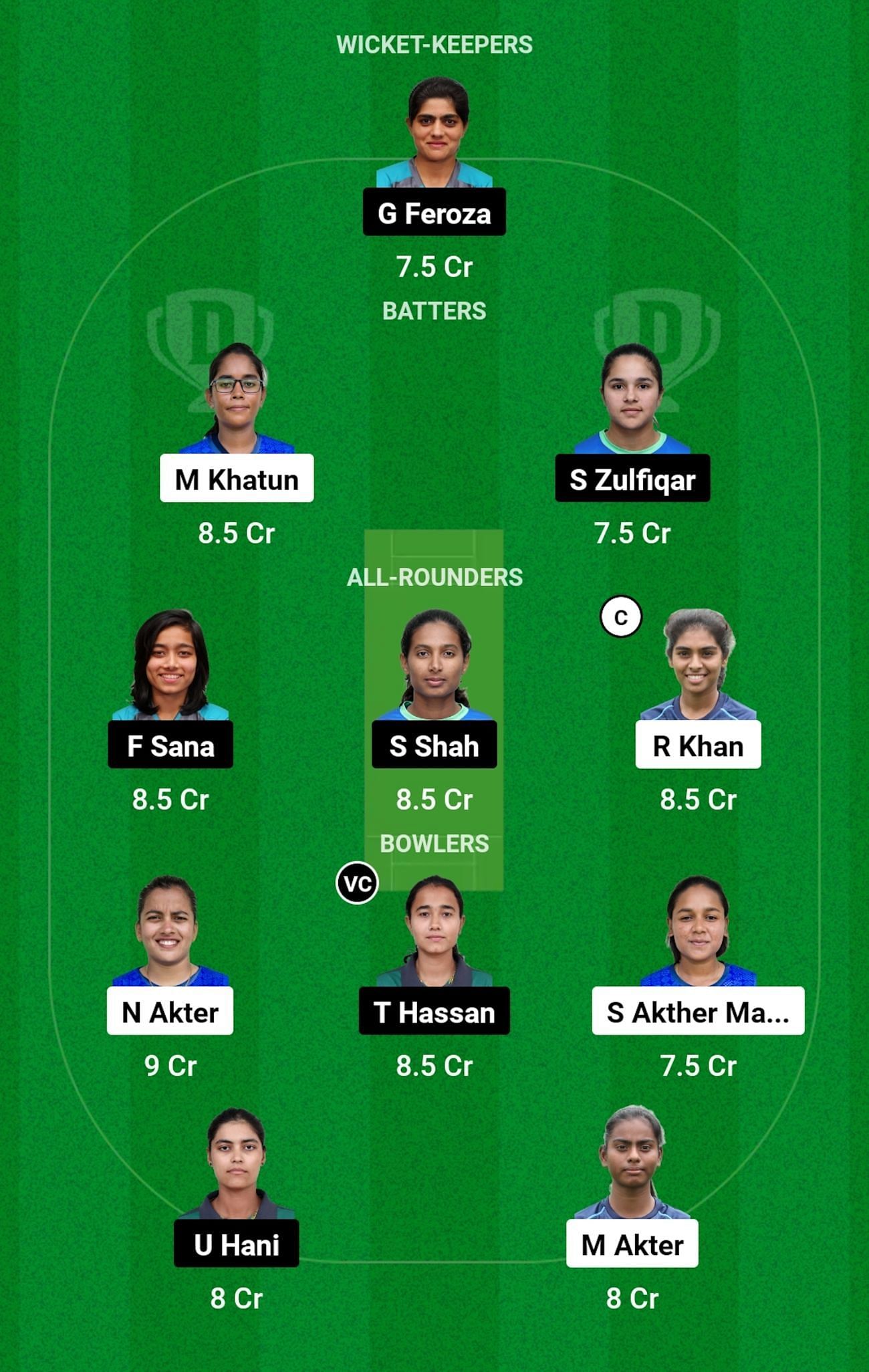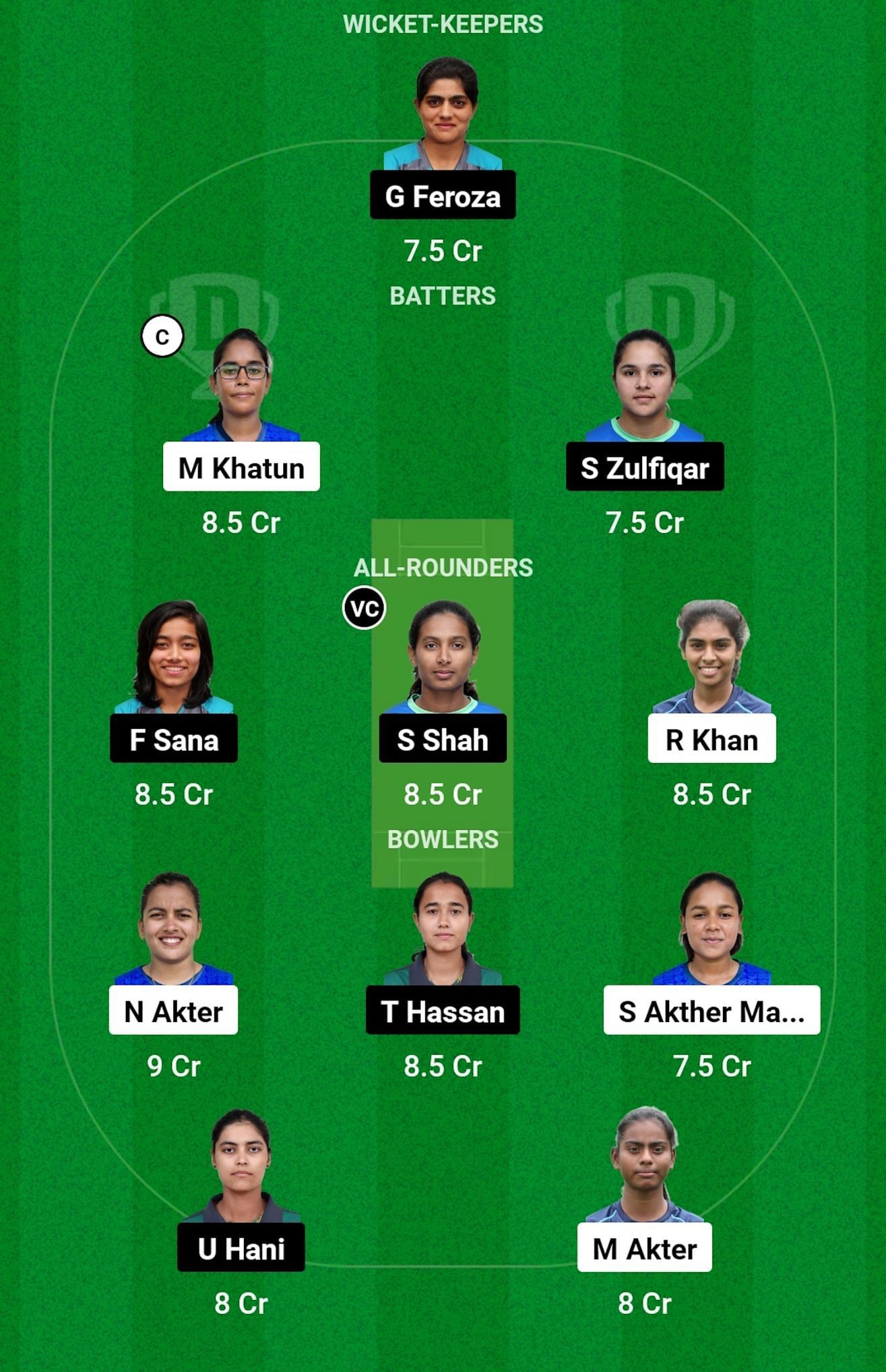 Bowlers: N Akter, T Hassan (vc), S Akther, U Hani, M Akter