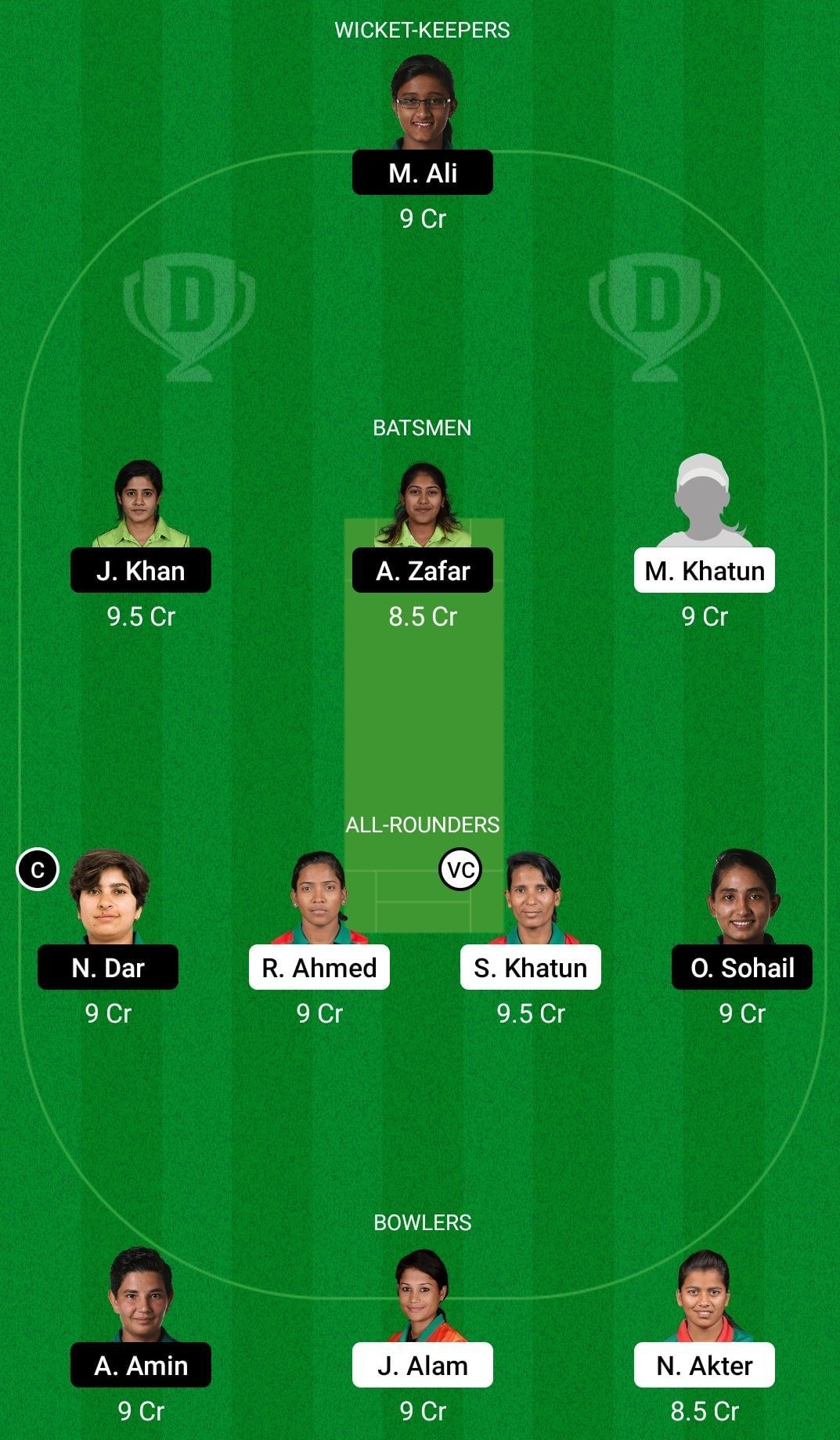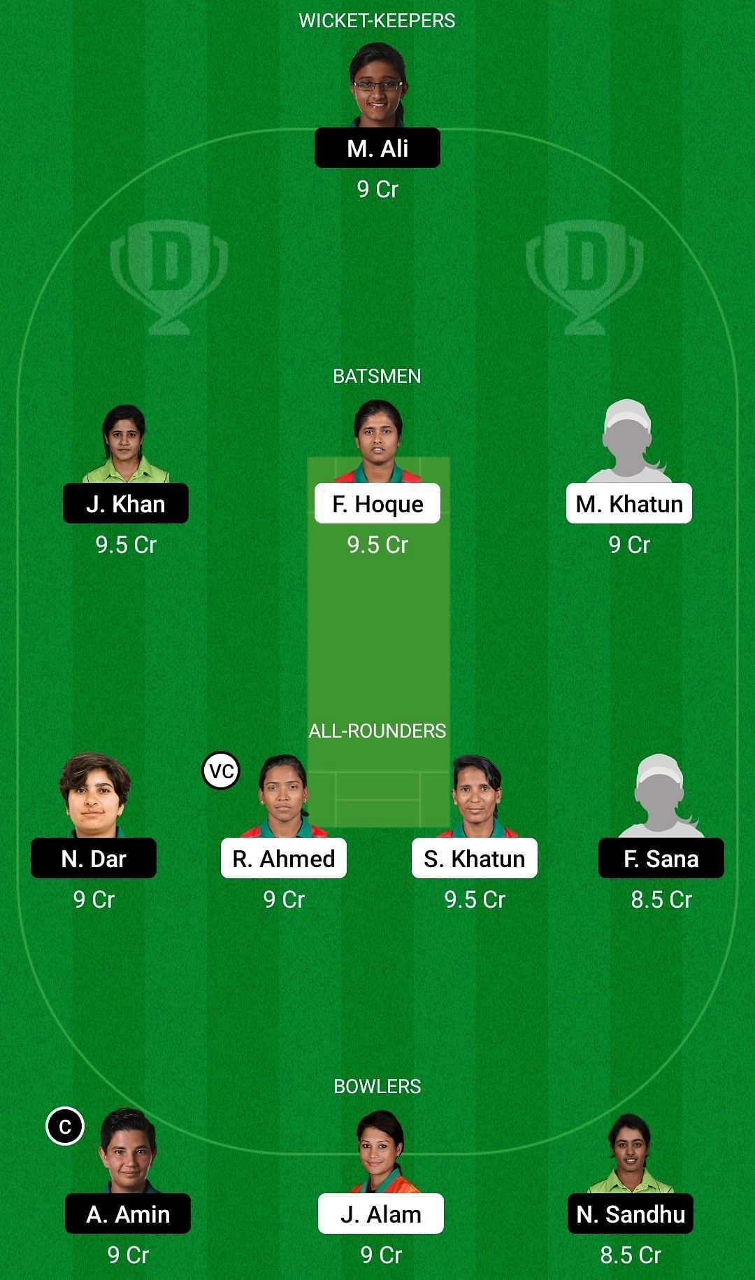 Fantasy Suggestion #1: Muneeba Ali, Javeria Khan, Ayesha Zafar, Murshida Khatun, Nida Dar, Rumana Ahmed, Salma Khatun, Omaima Sohail, Anam Amin, Jahanara Alam, Nahida Akter