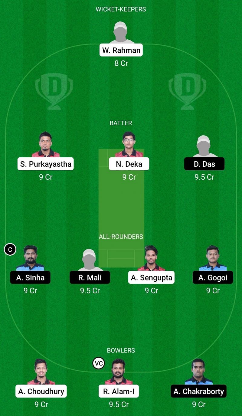 Fantasy Suggestion #1: Wasiqur Rahman, Swarupam Purkayastha, Nibir Deka, Danish Das, Amit Sinha, Ranjit Mali, Akash Sengupta, Abhilash Gogoi, Avinav Choudhury, Roshan Alam, Abir Chakraborty