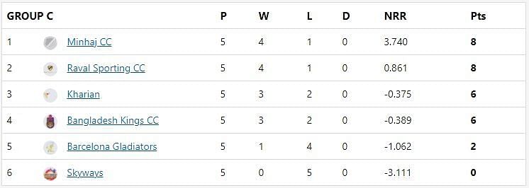 The standings in Group C and D of the Barcelona T10 League 2021 are as follows: