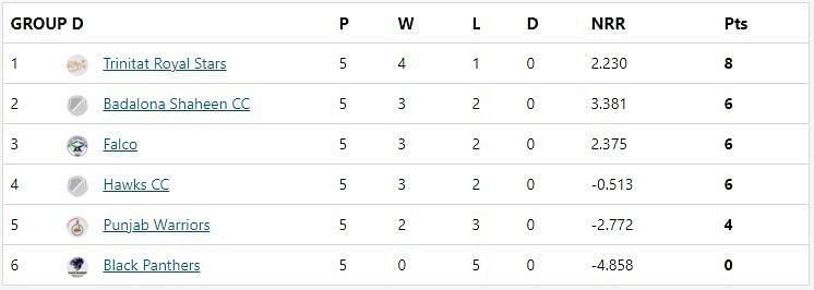 Badalona Shaheen, Falco, and Hawks follow the table-toppers in the points table. The three teams have six points apiece and are only separated by their net run rates.