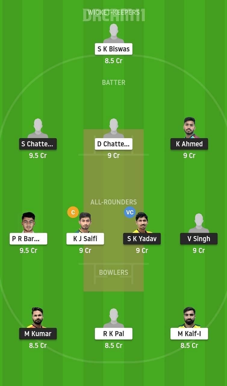 Fantasy Suggestion #1: SK Biswas, S Chatterjee, D Chatterjee, K Ahmed, KJ Saifi, SK Yadav, PR Barman, V Singh, RK Pal, M Kaif, M Kumar