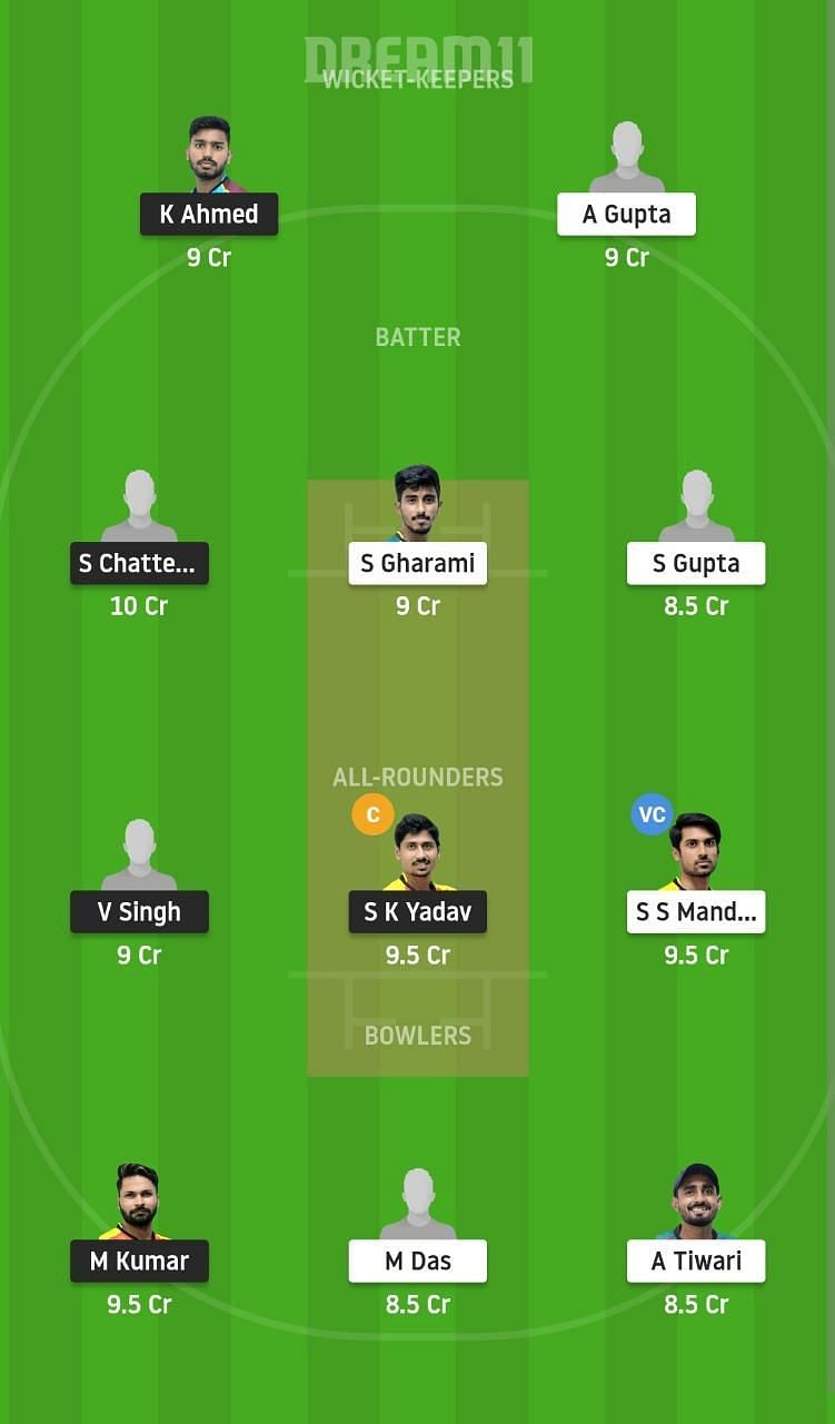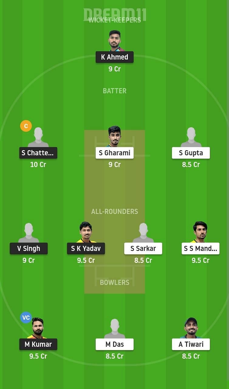 Fantasy Suggestion #2: K Ahmed, S Chatterjee, S Gupta, S Gharami, SK Yadav, SS Mandal, S Sarkar, V Singh, M Kumar, M Das, A Tiwari