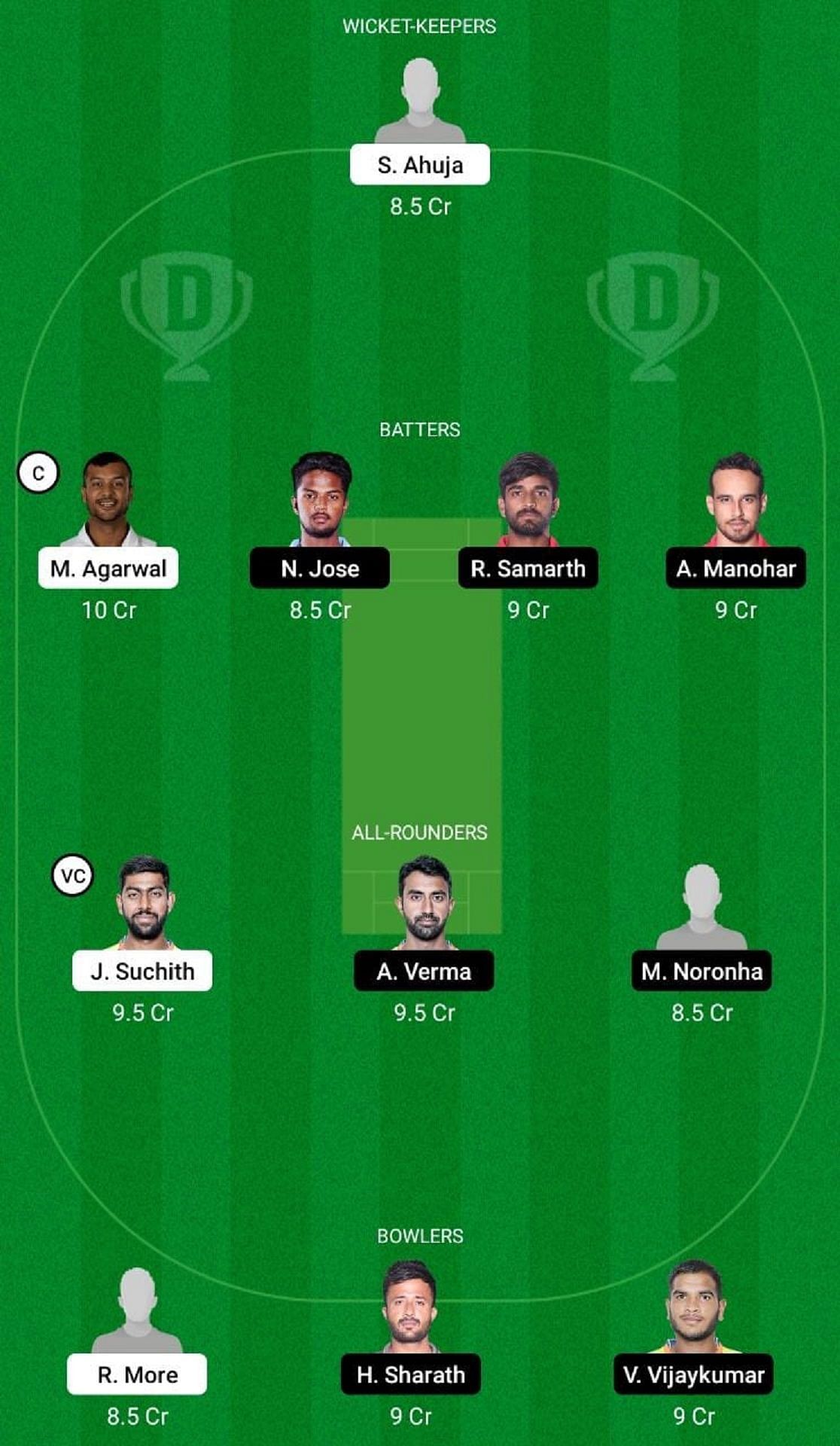 Captain: Mayank Agarwal. Vice-captain: Jagadeesha Suchith.