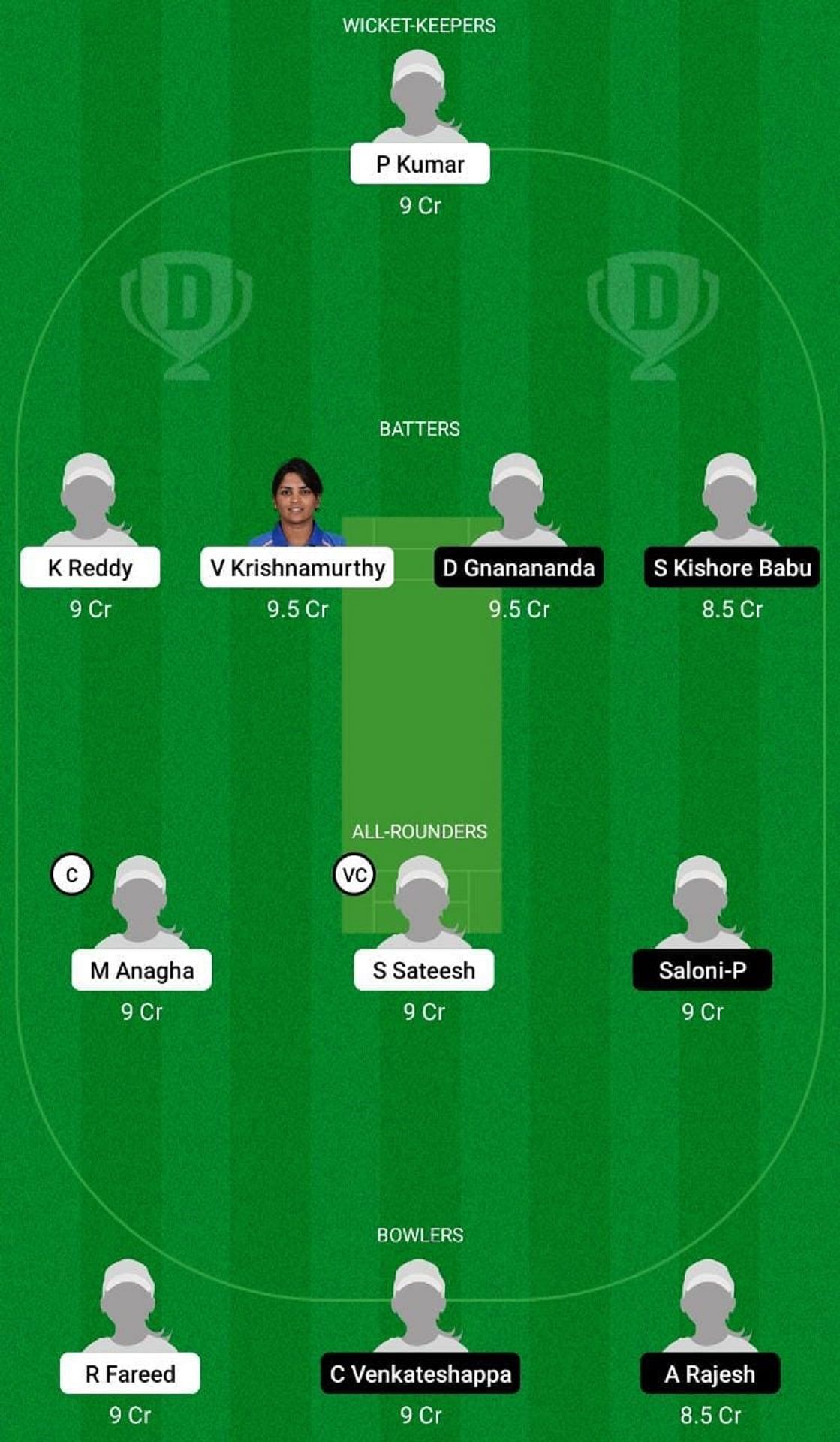 Batters: Divya Gnanananda, Krishika Reddy, Veda Krishnamurthy, S Kishore Babu