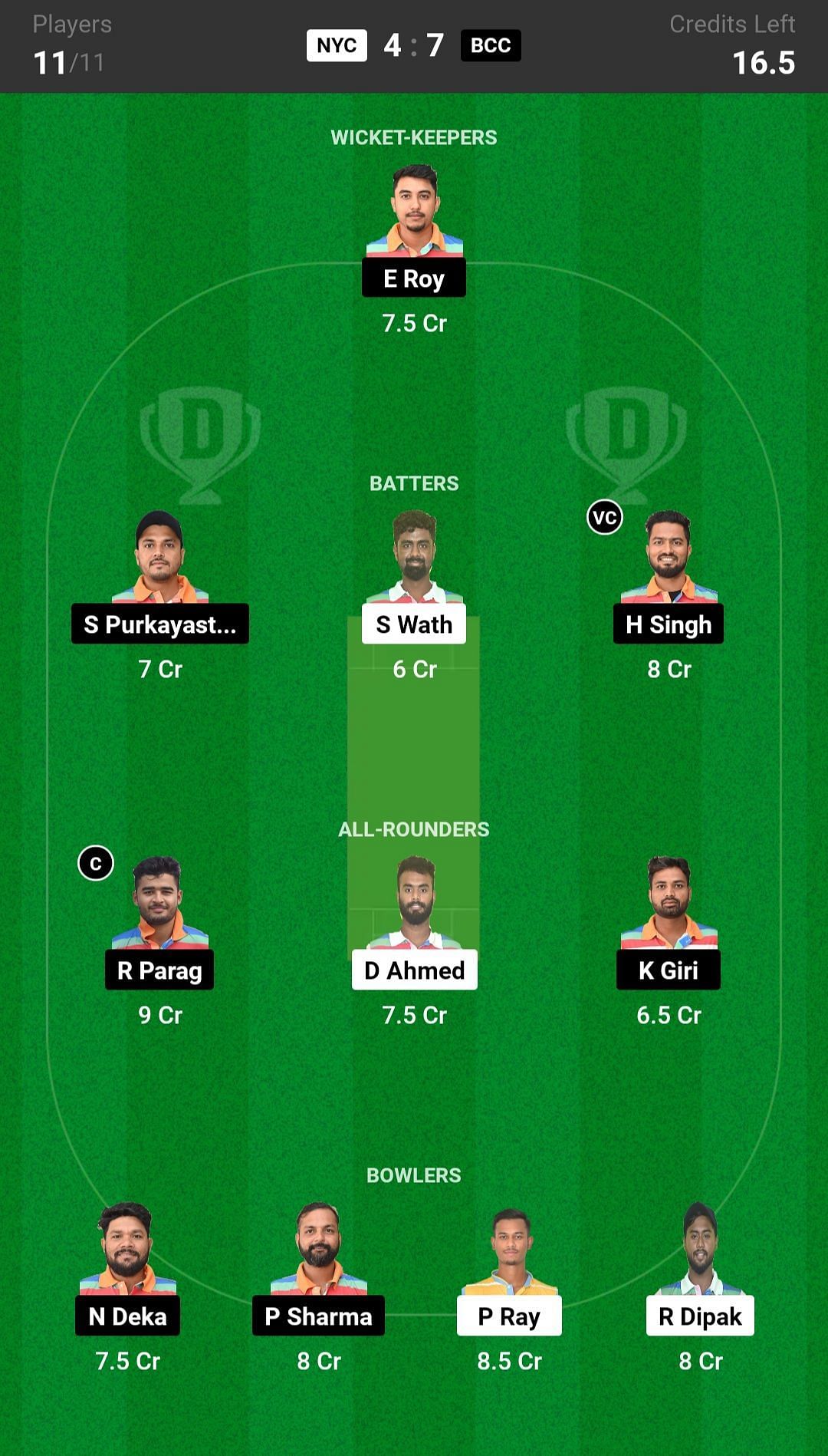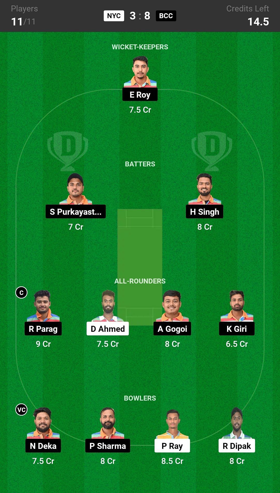 The top bowler picks for today's Dream11 team are R Dipak and N Deka. Both have bowled brilliantly in the last few matches, and are also expected to bowl in death overs. P Sharma is another good pick for the Dream11 team.