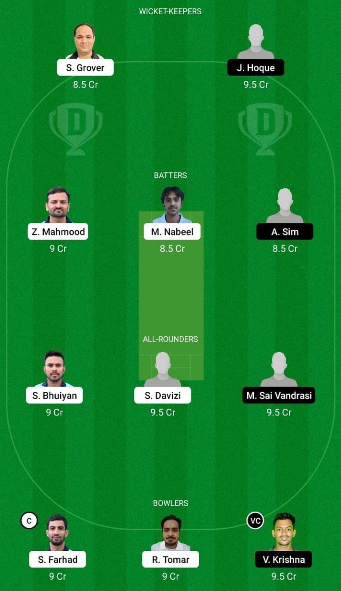 Fantasy Suggestion #2: S Grover, J Hoque, Z Mahmood, A Sim, M Nabeel, M Vandrasi, S Davizi, S Bhuiyan, S Farhad, V Krishna, R Tomar.
