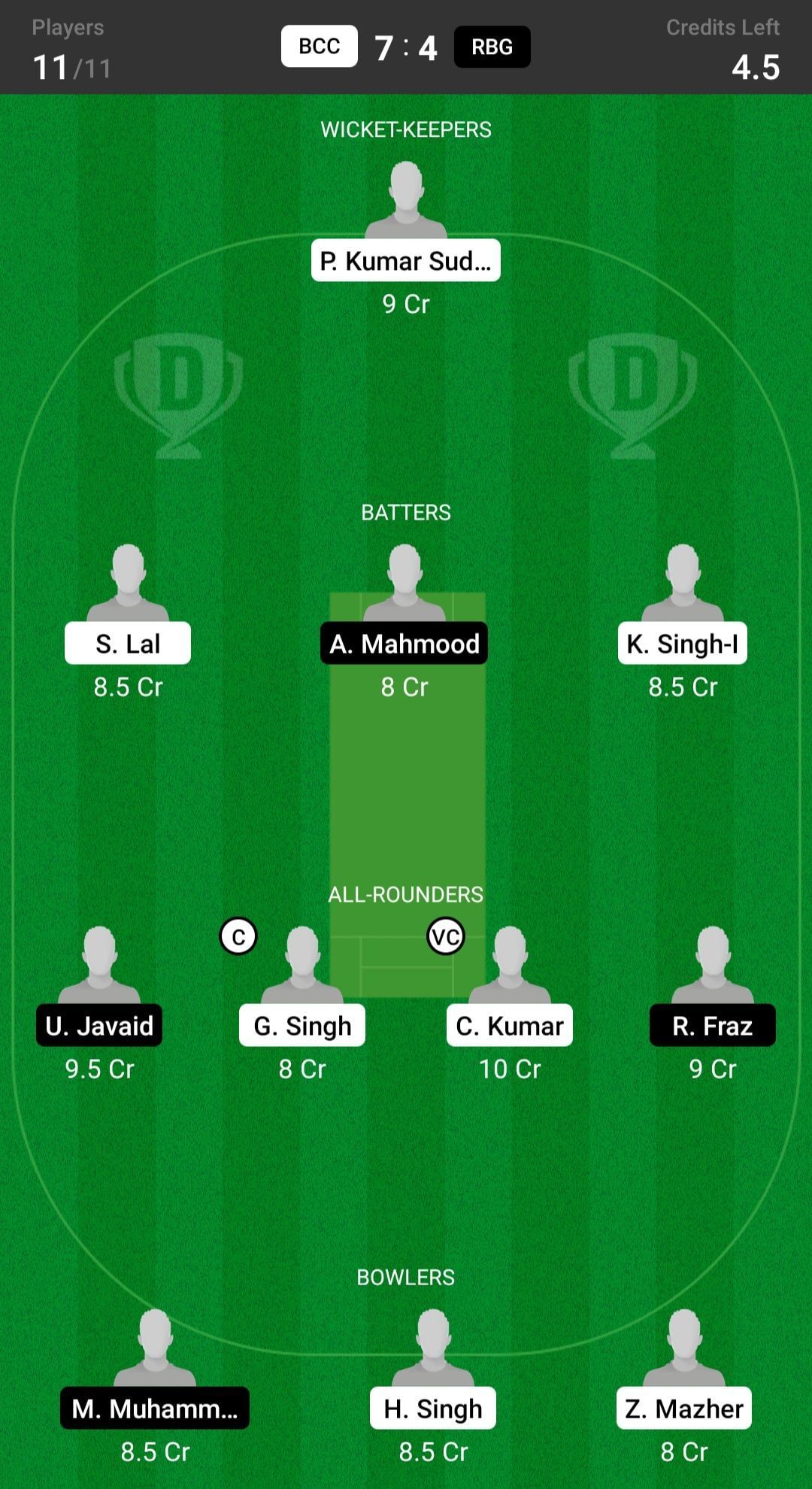 A Mahmood and S Lal are the two best batsmen to pick for the Dream11 team. B Singh is another good pick for today's Dream11 team. He has performed exceptionally well in previous domestic matches.