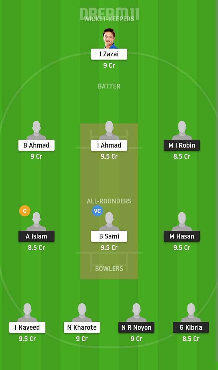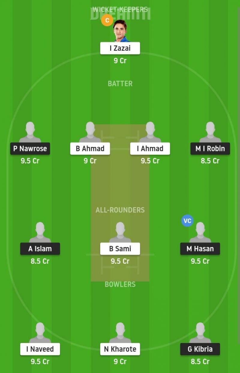 Fantasy Suggestion #1: I Zazai, M I Robin, I Ahmad, B Ahmad, M Hasan, B Sami, A Islam, G Kibria, NR Noyon, N Kharote, I Naveed