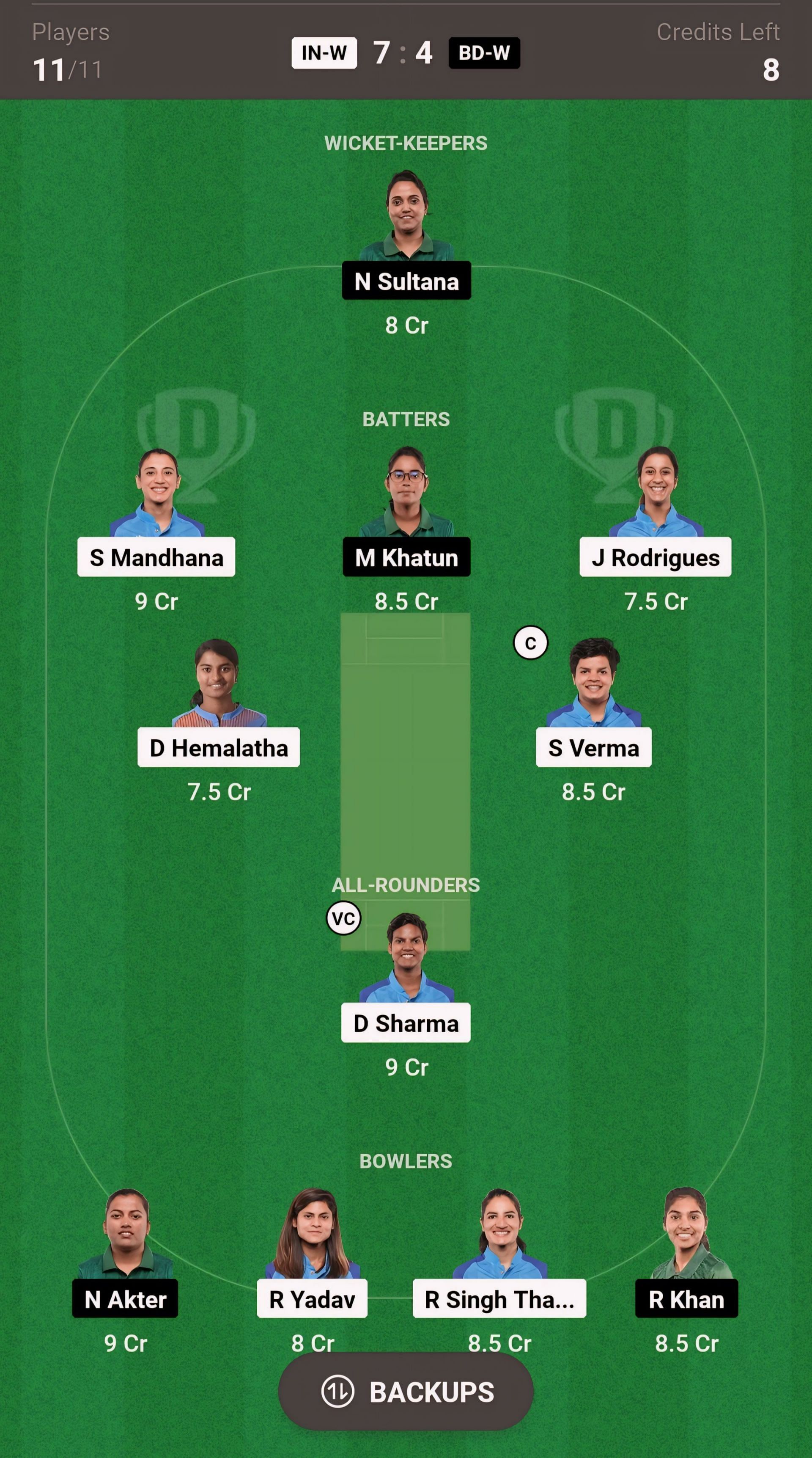 Batters: S Verma, S Mandhana, M Khatun, D Hemalatha, J Rodrigues