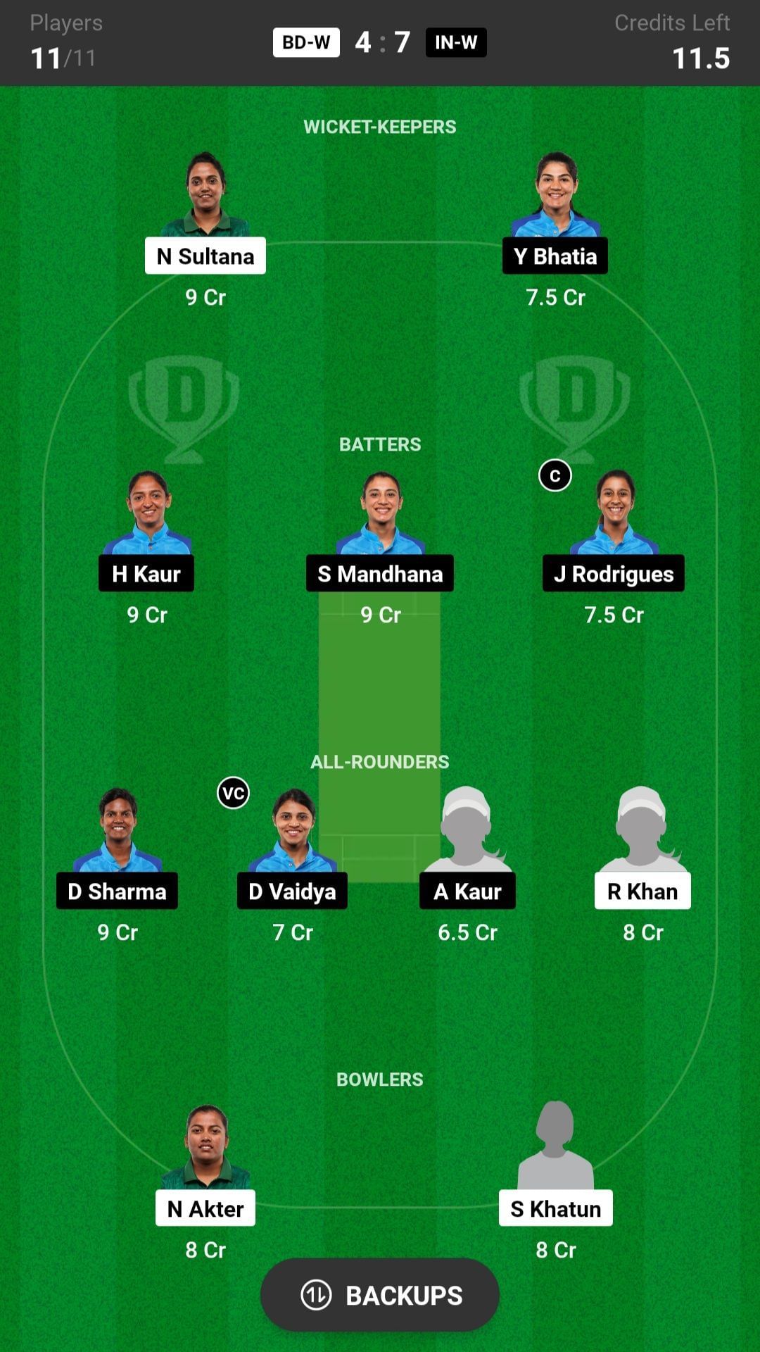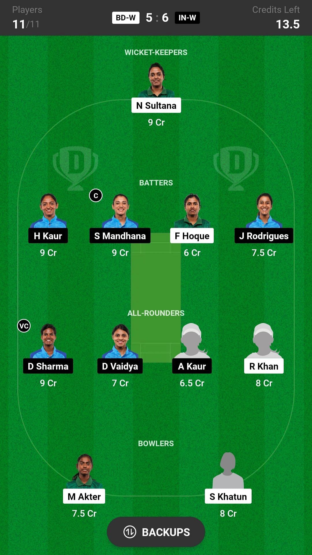 Bangladesh Women vs India Women Dream11 Prediction Today, Grand League