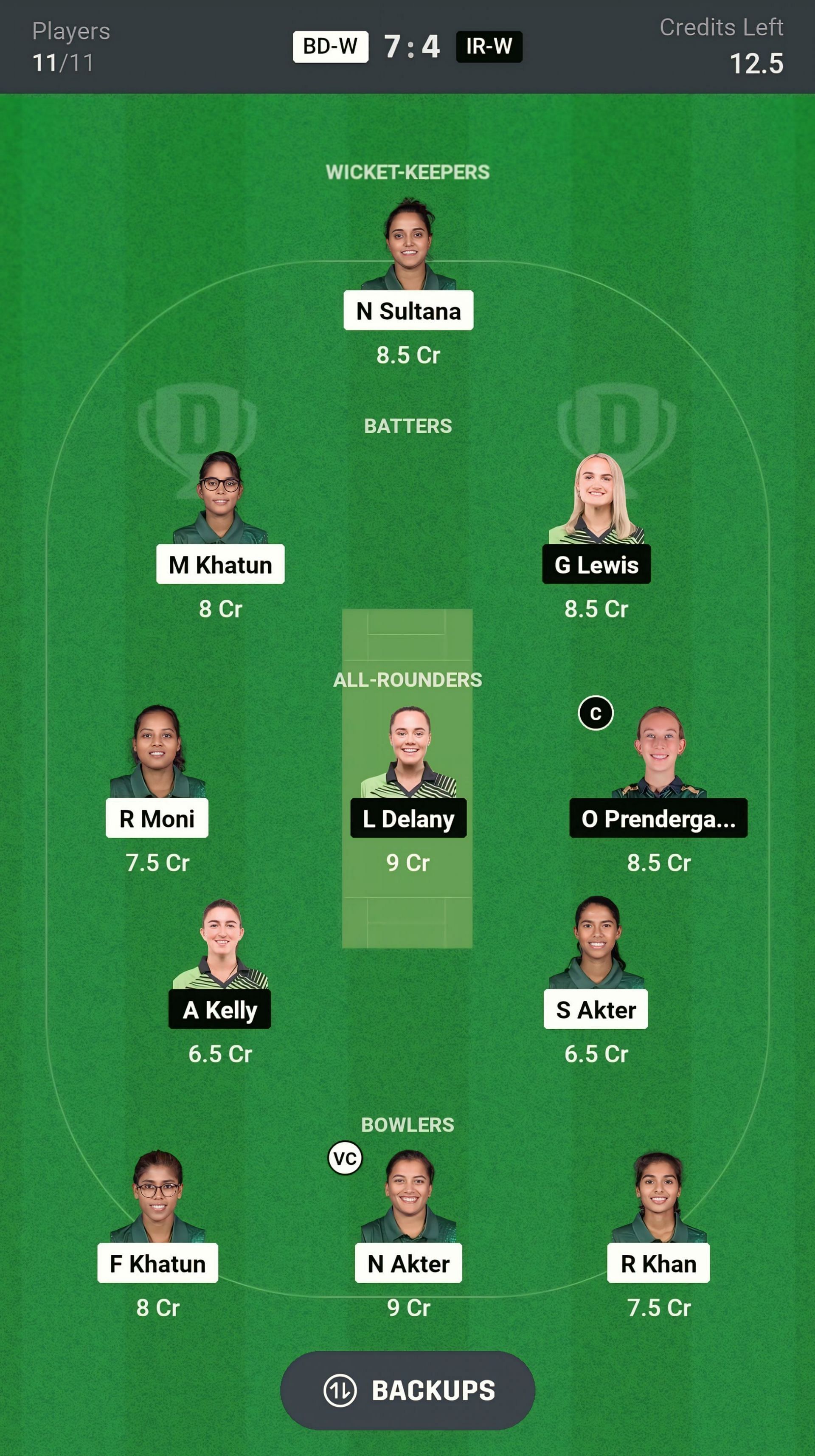 Bangladesh Women vs Ireland Women Dream11 Prediction Today, Grand League