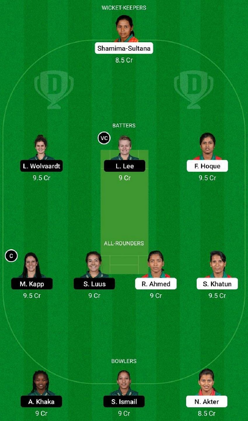 Fantasy Suggestion #1: N Sultana, L Wolvaardt, L Lee, S Mostary, M Kapp, S Luus, R Ahmed, S Khatun, A Khaka, S Ismail and R Moni