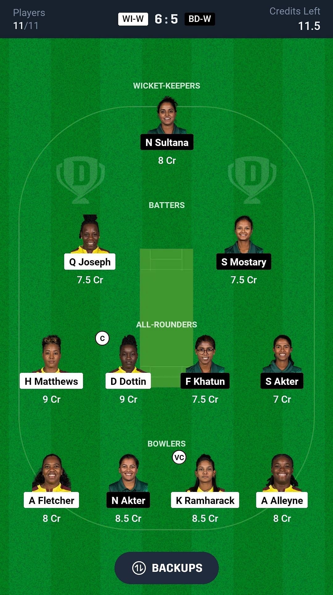 BD-W vs WI-W match captain and vice-captain choices