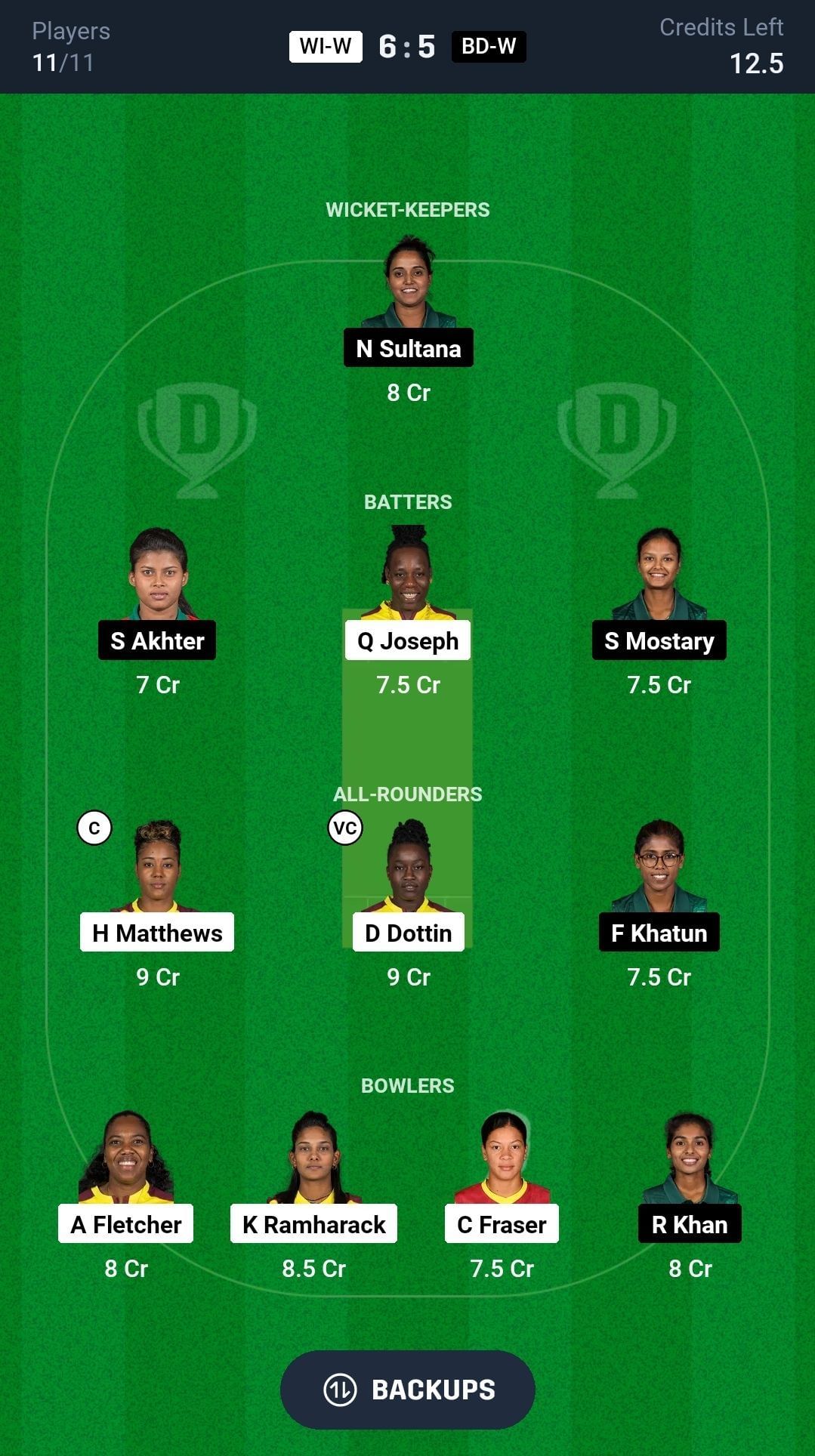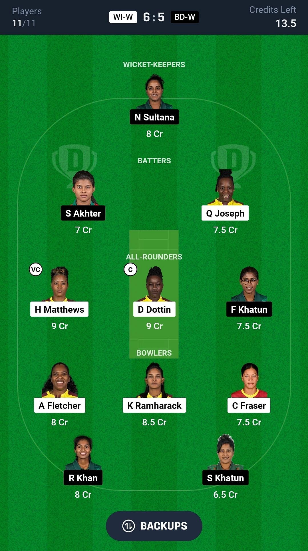 Bangladesh Women vs West Indies Women Dream11 Prediction Today, Grand League