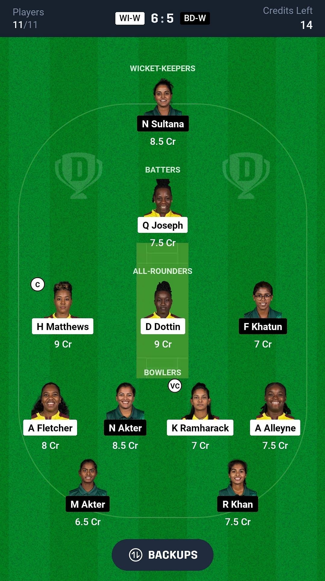 Bangladesh Women vs West Indies Women Dream11 Prediction Today, Grand League