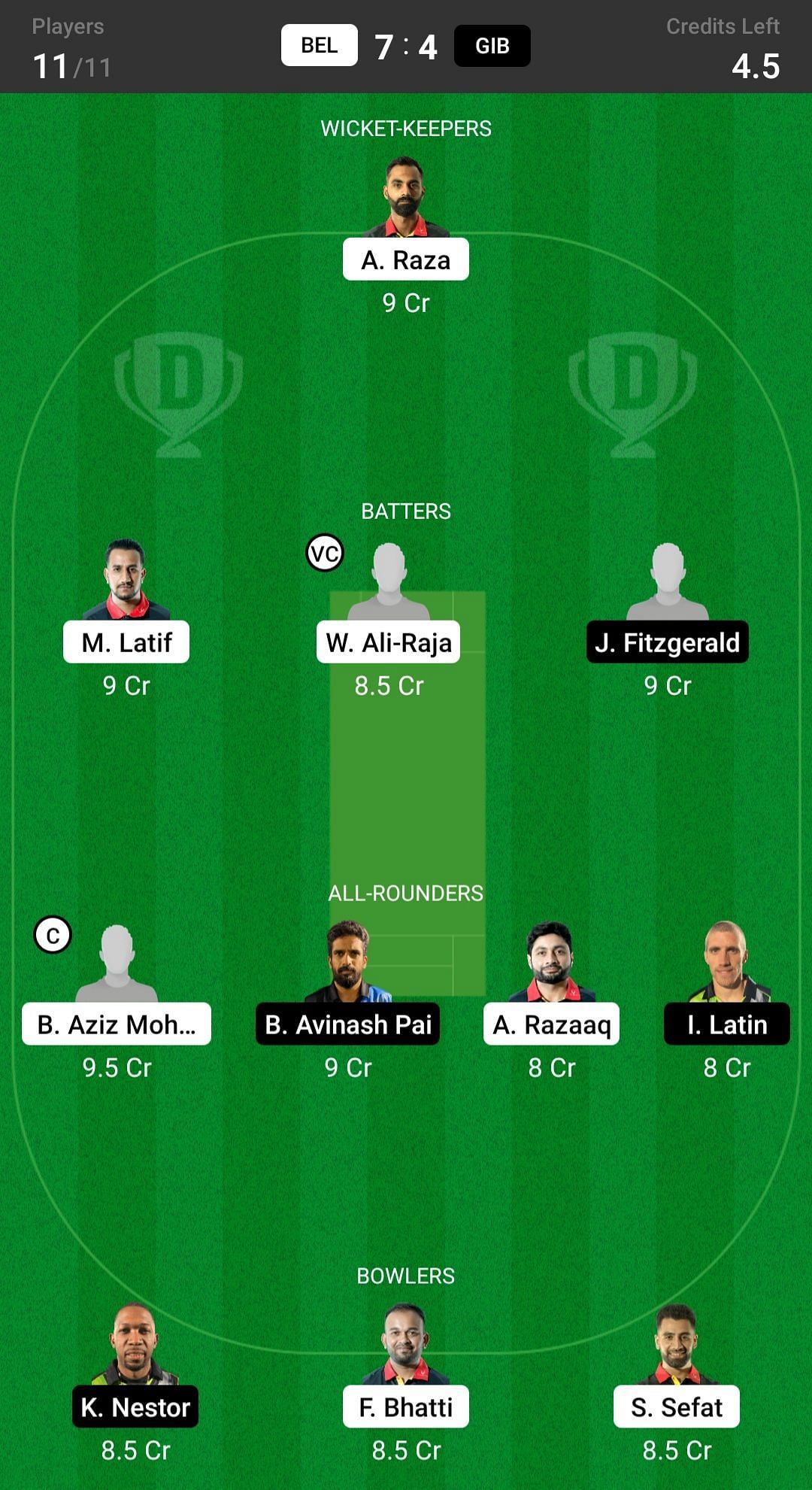Top players to pick in BEL vs GIB Dream11 prediction team