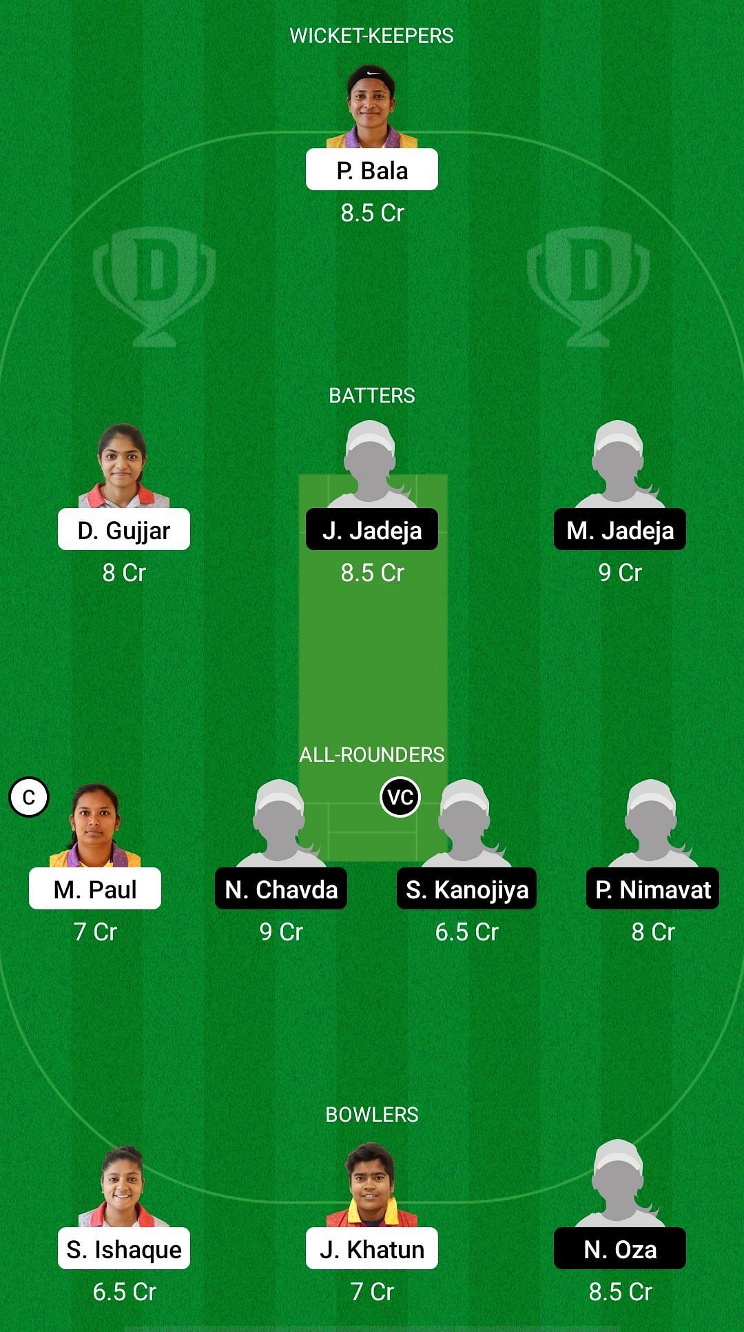 Batters: Jayshreeba Jadeja, Mridula Jadeja, Dhara Gujjar.