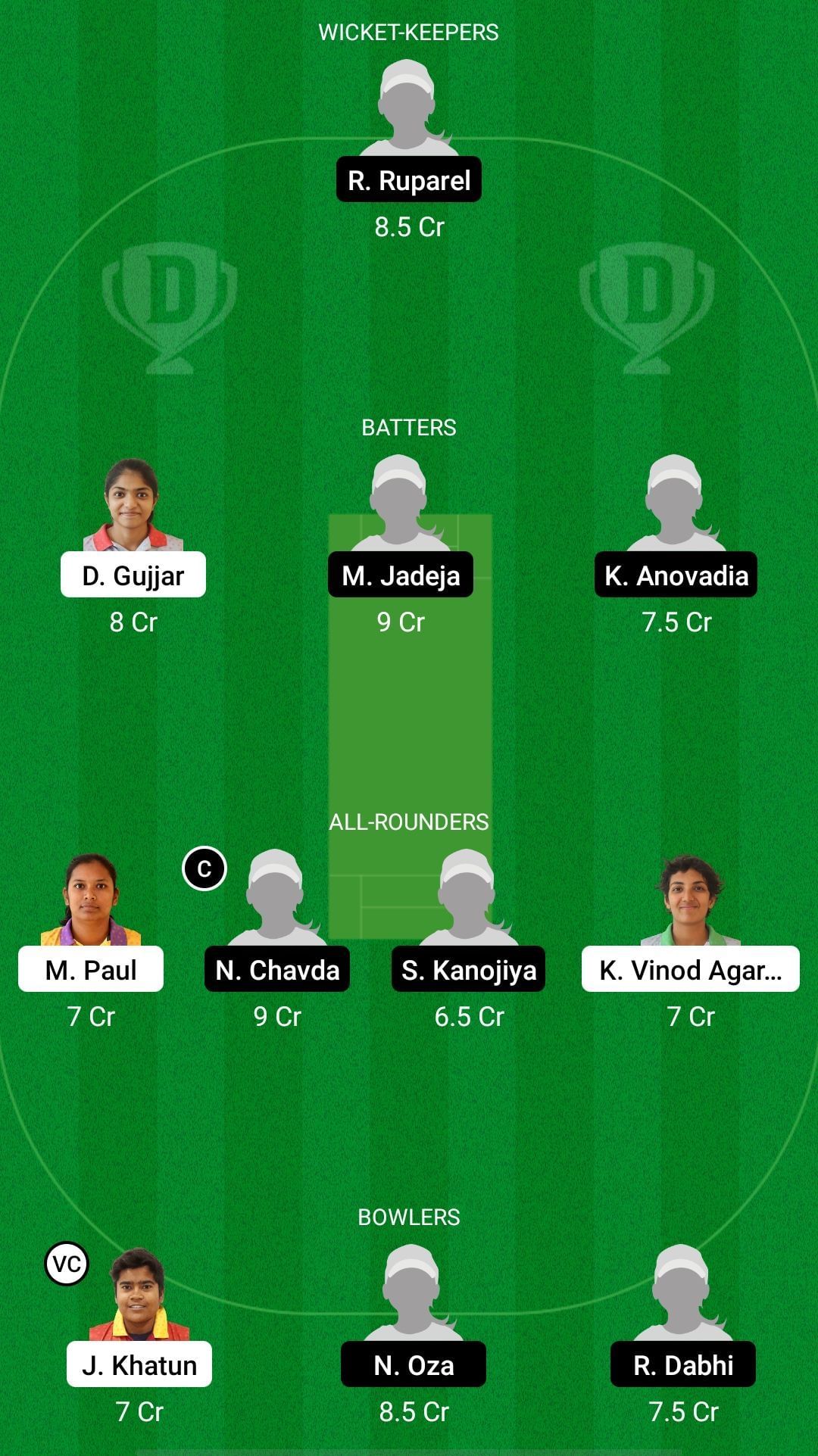 Batters: Dhara Gujjar, Mridula Jadeja, Krishna Anovadia.