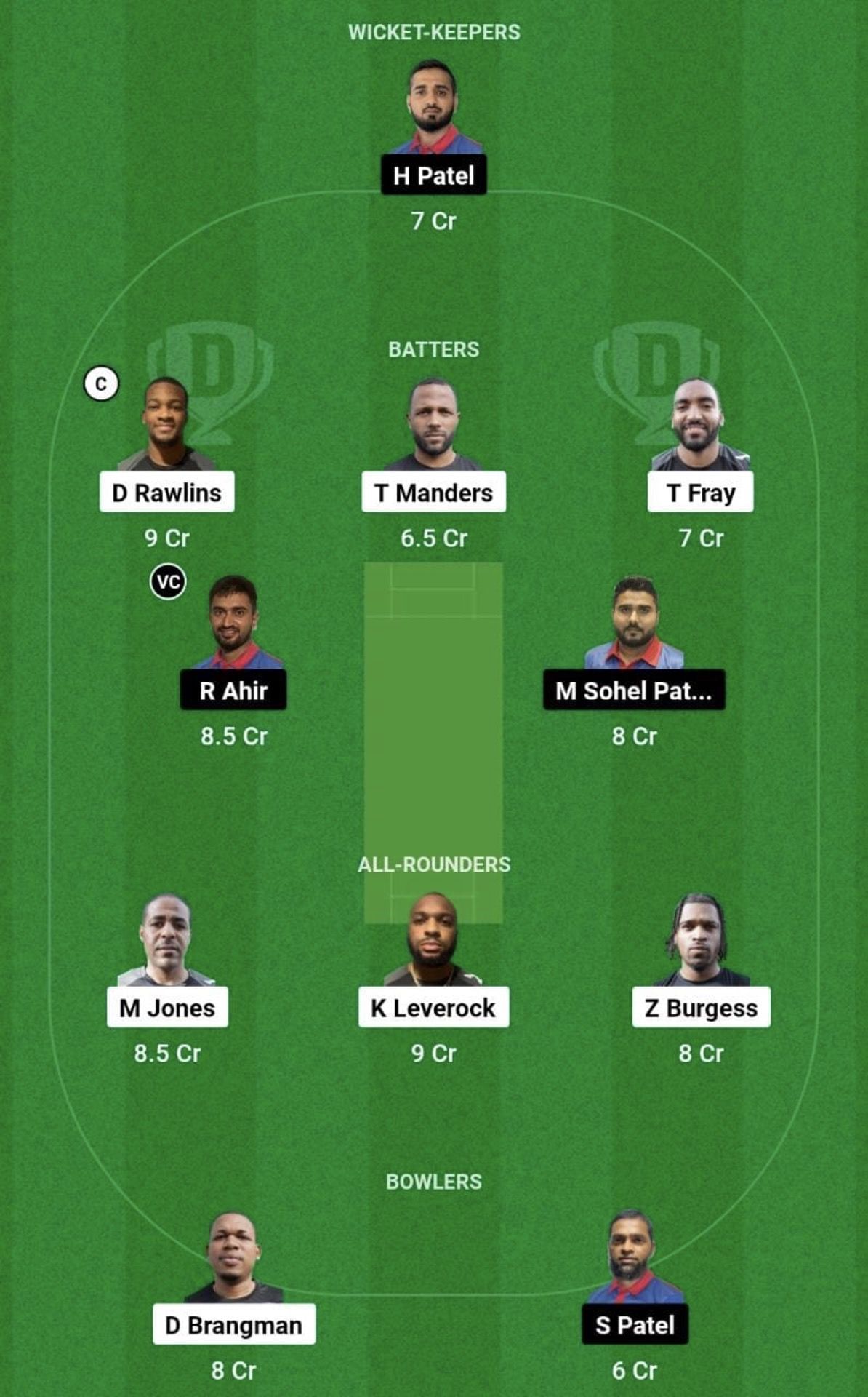 Batters: D Rawlins, T Manders, T Fray, M Sohel Patel, R Ahir
