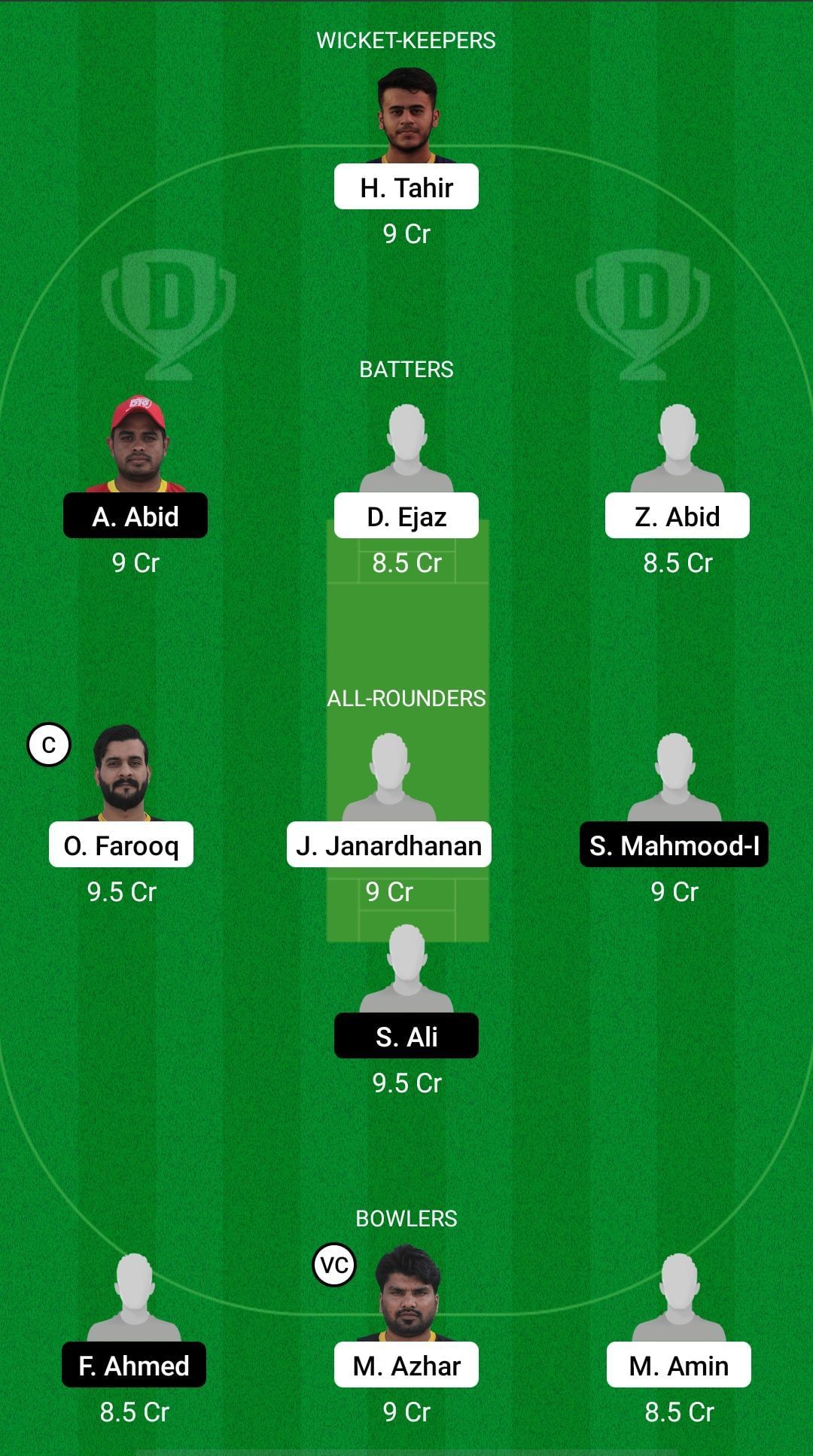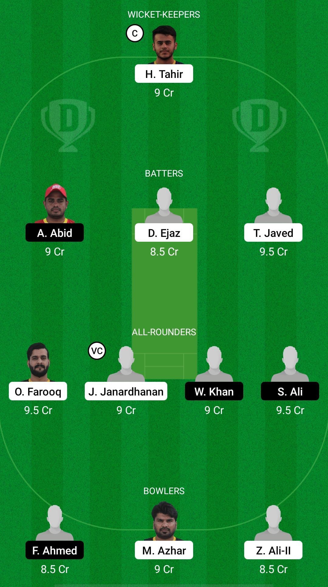 Fantasy Suggestion #1: Hamdan Tahir, Ali Abid, Dawood Ejaz, Tanvir Javed, Omer Farooq, Jiju Janardhanan, Wajid Khan, Shahbaz Ali, Fayyaz Ahmed, Mohammad Azhar, Zahid Ali.