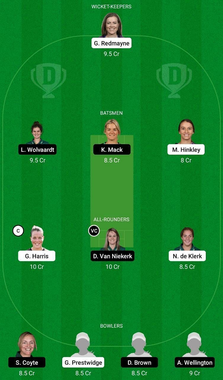 Fantasy Suggestion #2: Georgia Redmayne, Laura Wolvaardt, Mikayla Hinkley, Katie Mack, Grace Harris, Dane van Niekerk, Nadine de Klerk, Sarah Coyte, Georgia Prestwidge, Darcie Brown and Amanda Wellington