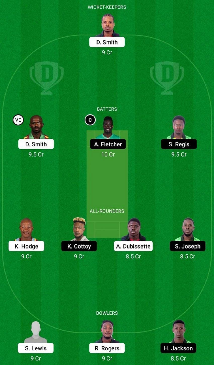 Devon Smith (c), Amikel Dubissette, Kayden Felix, Kavem Hodge, Divonie Smith, Shermon Lewis, Nelon Pascal, Jerlani Robinson, Richard Rogers, Denis Smith (wk) and St Nickozi Hillaire