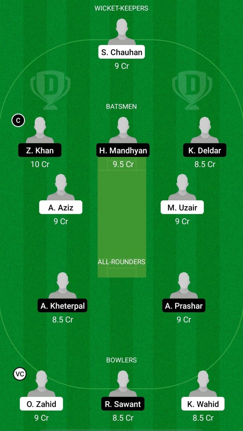 Fantasy Suggestion #1: Sachin Chauhan, Zeeshan Khan, Harsh Mandhyan, Khaibar Deldar, Amjad Aziz, Muhammad Uzair, Abhishek Kheterpal, Abhitesh Prashar, Omer Zahid, Ruturaj Sawant, Kamran Wahid.