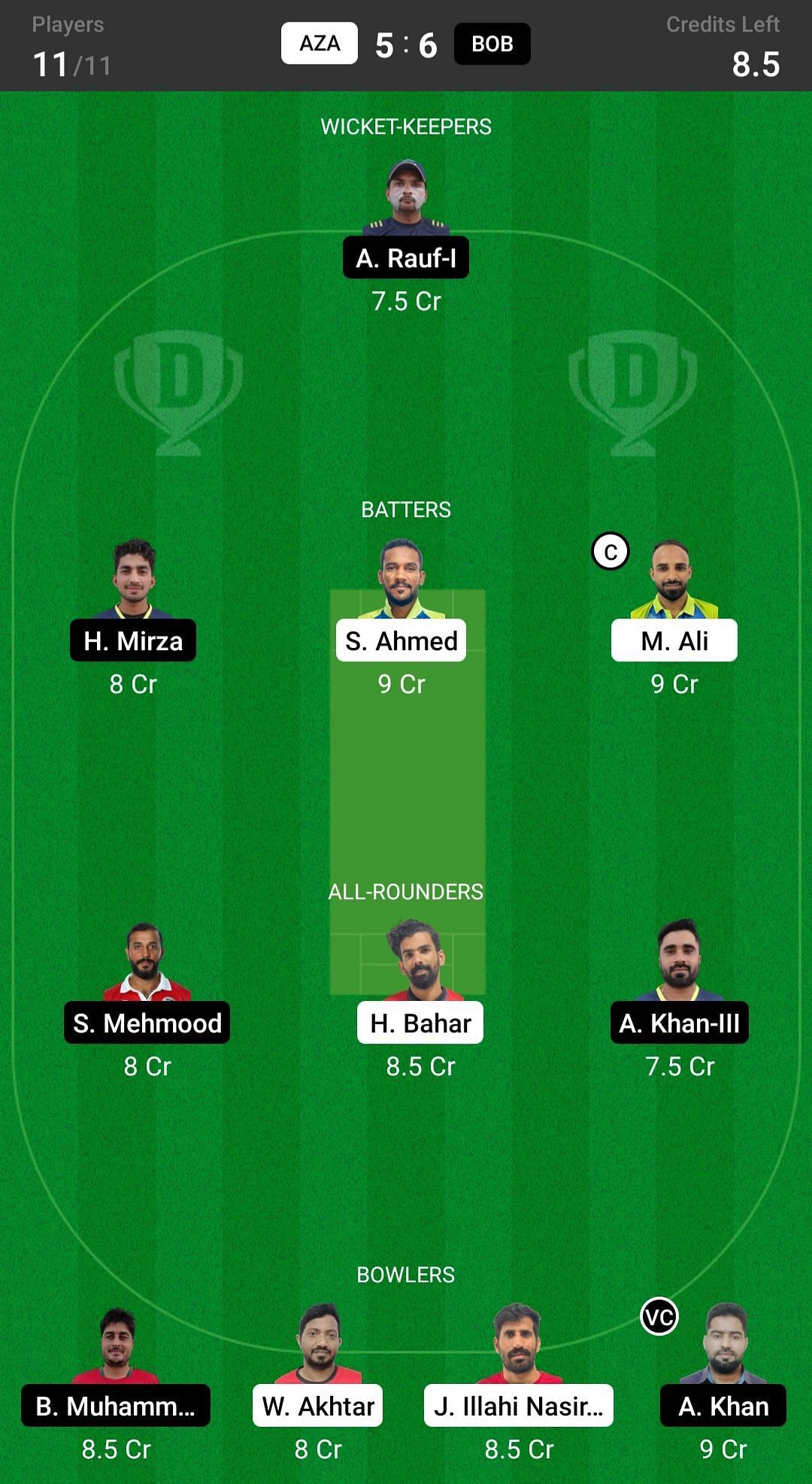 M Ali and S Ahmed are the two best batter picks for the Dream11 team. H Mirza has performed exceptionally well in the previous few matches, so he is another good pick for today's match.