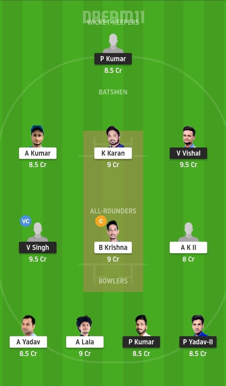 Fantasy Suggestion #2: P Kumar, K Karan, V Vishal, K Kushagra, A Bhardwaj, B Krishna, V Singh, A Kumar II, P Yadav II, A Yadav, P Kumar