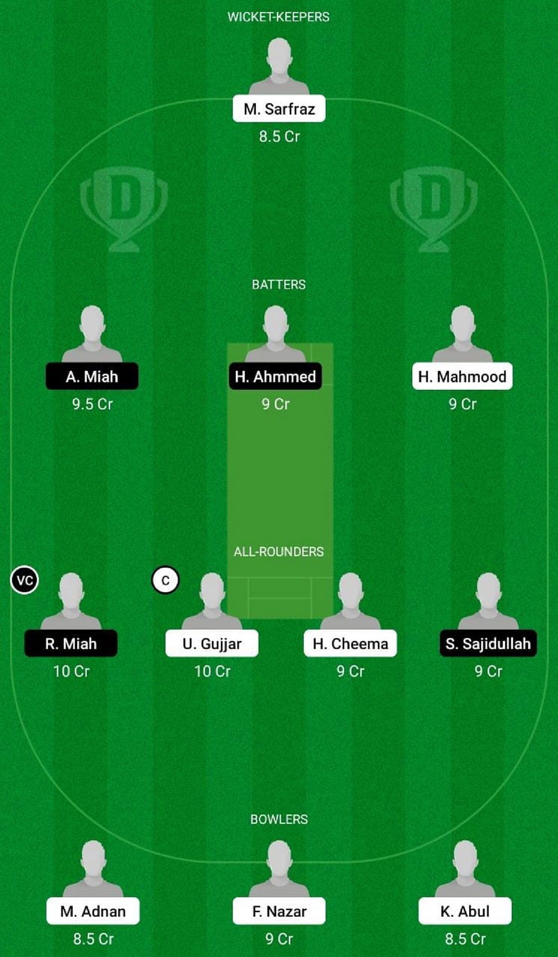 Fantasy Suggestion #1: M Sarfraz, H Mahmood, A Miah, H Ahmed, U Gujjar, R Miah, H Cheema, S Sajidullah, F Nazar, K Abul, M Adnan